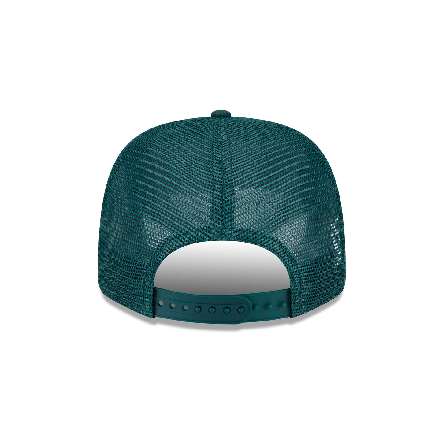 The Minnesota Wild Simple 9SEVENTY Trucker features an embroidered Wild logo at the front panels with a snapback closure at a mesh rear and a gray undervisor.