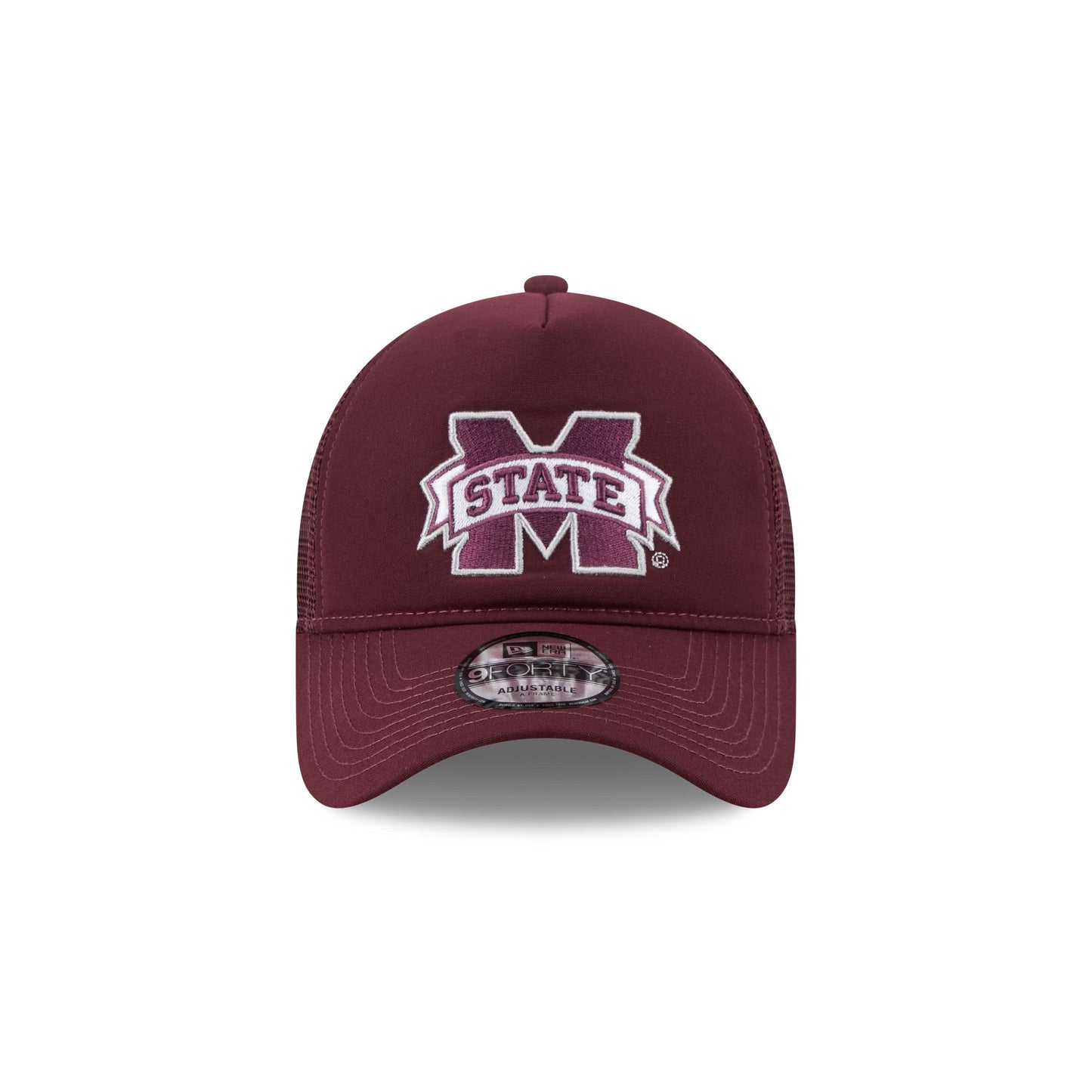 The Mississippi State Bulldogs Go-To 9FORTY A-Frame Trucker features an embroidered Bulldogs logo at the front panels with a snapback closure at a mesh rear.