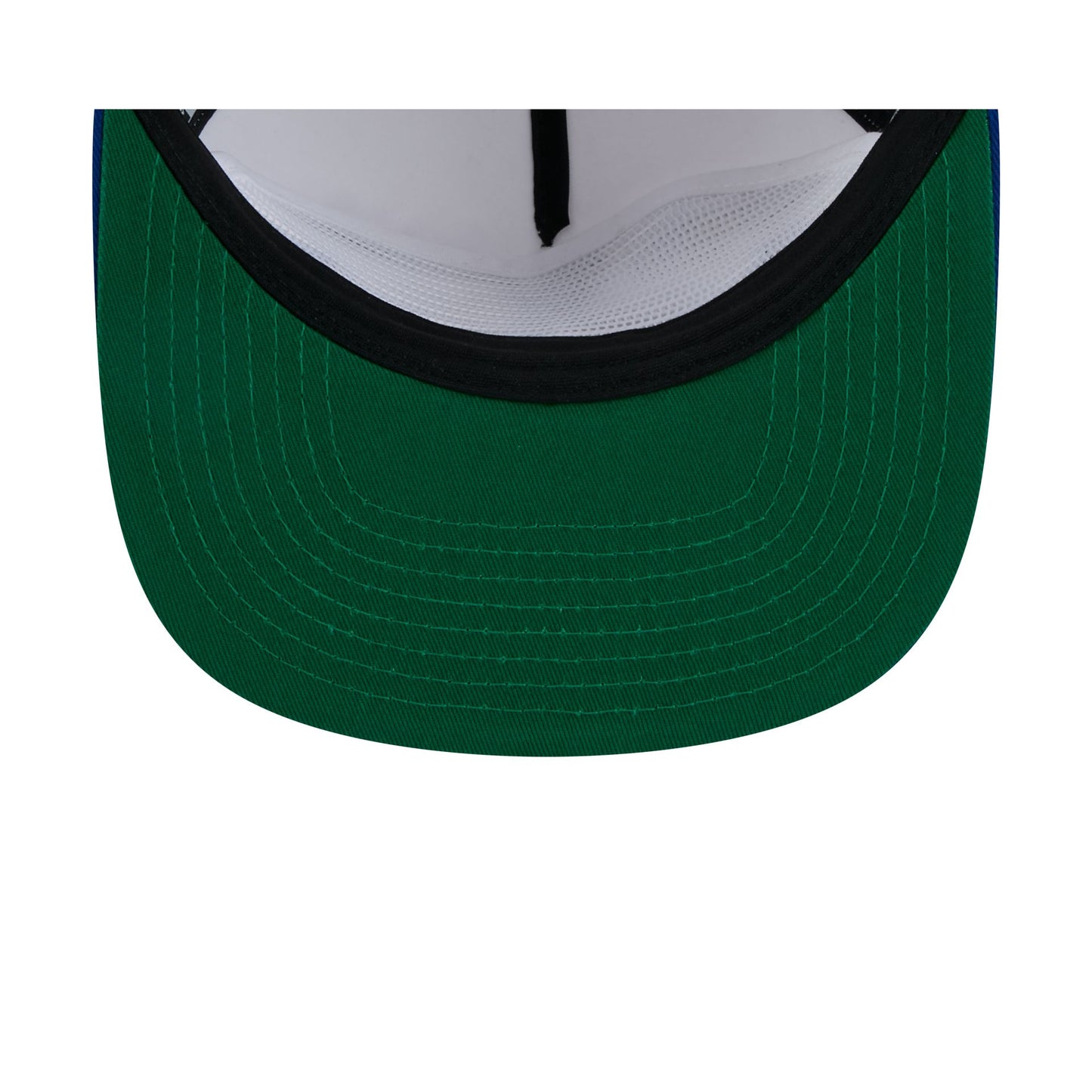 The MLB World Series 1993 Championship Pin Golfer features an embroidered 1993 World Series patch with dueling Toronto Blue Jays and Philadelphia Phillies pins and team wordmarks at the front panels. Additional details include a blue visor with green undervisor and an adjustable snapback closure at the rear.