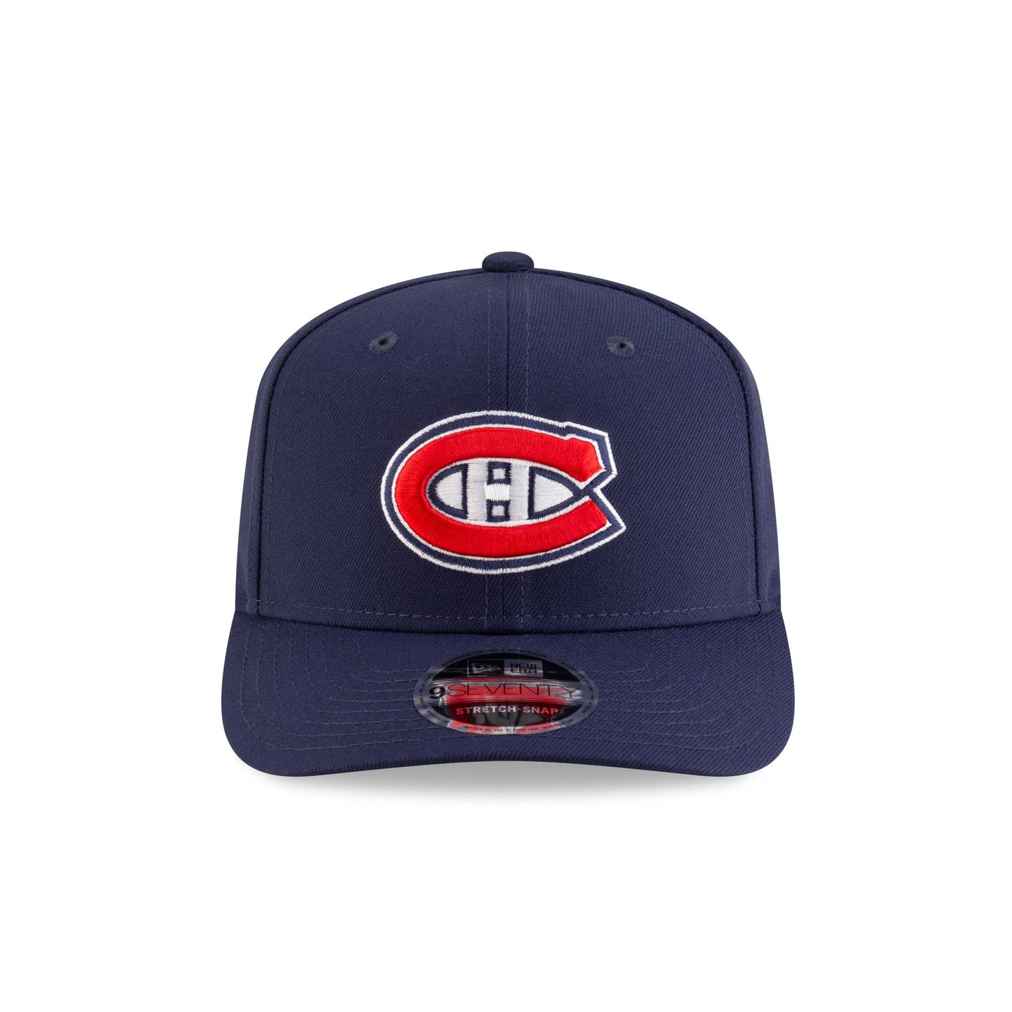 The Montreal Canadiens Team 9SEVENTY Stretch-Snap Cap features an embroidered Canadiens logo at the front panels with the NHL Shield logo above an adjustable stretch-snap closure at the rear and a gray undervisor.
