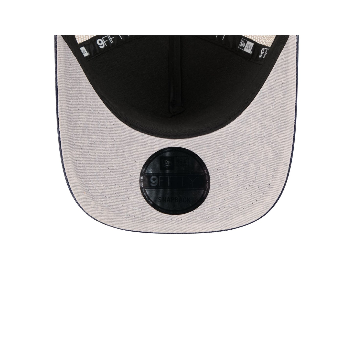 The Montreal Canadiens Vintage Landscape 9FIFTY A-Frame Trucker features an embroidered Canadiens Vintage Landscape patch at the front panels with a team logo at the right-wear side. Additional details include an adjustable snapback closure at the rear and a gray undervisor.