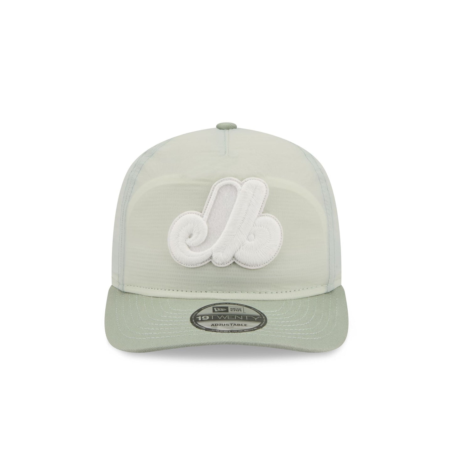 The Montreal Expos Crinkle 19TWENTY Adjustable Cap features an embroidered Expos logo at the front panels with a nylon fabrication throughout. Additional details include the MLB Batterman logo above an adjustable snapback closure at the rear and a green undervisor.