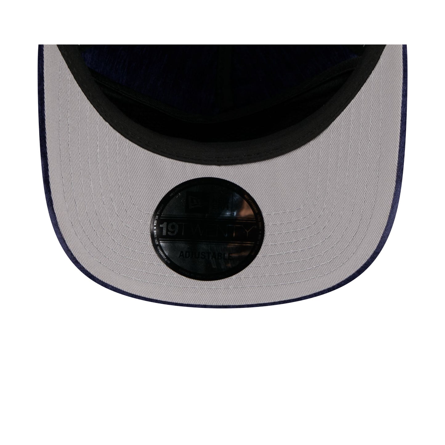 The Montreal Expos Velvet Team Script 19TWENTY Adjustable Cap features an embroidered Expos Cooperstown wordmark and logo at the front panels with an adjustable snapback closure at a pinstripe mesh rear and a gray undervisor.