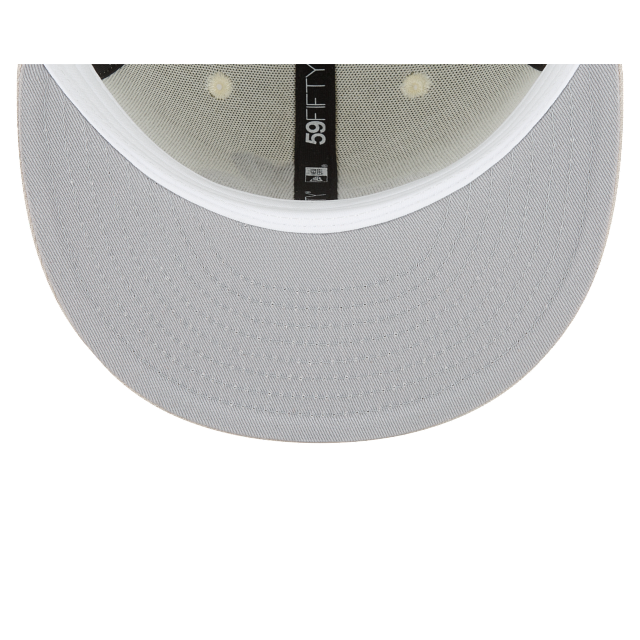 The Montreal Expos White 59FIFTY Fitted Cap features an embroidered Expos logo at the front panels with a matching MLB Batterman logo at the rear. Additional details include an All-Star Game patch at the right-wear side and a gray undervisor.