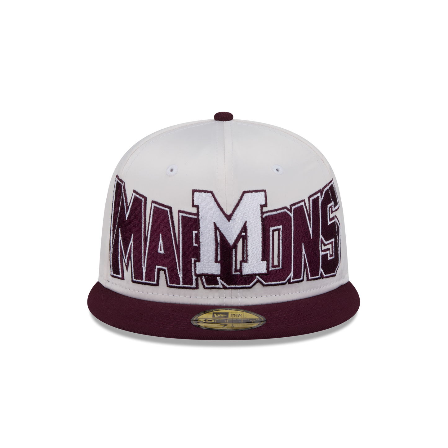 The Montreal Maroons Bold Satin 59FIFTY Fitted Cap features an embroidered satin Maroons Historic graphic at the front panels with a satin fabrication throughout. Additional details include a matching Vintage Hockey logo at the rear and a gray undervisor.