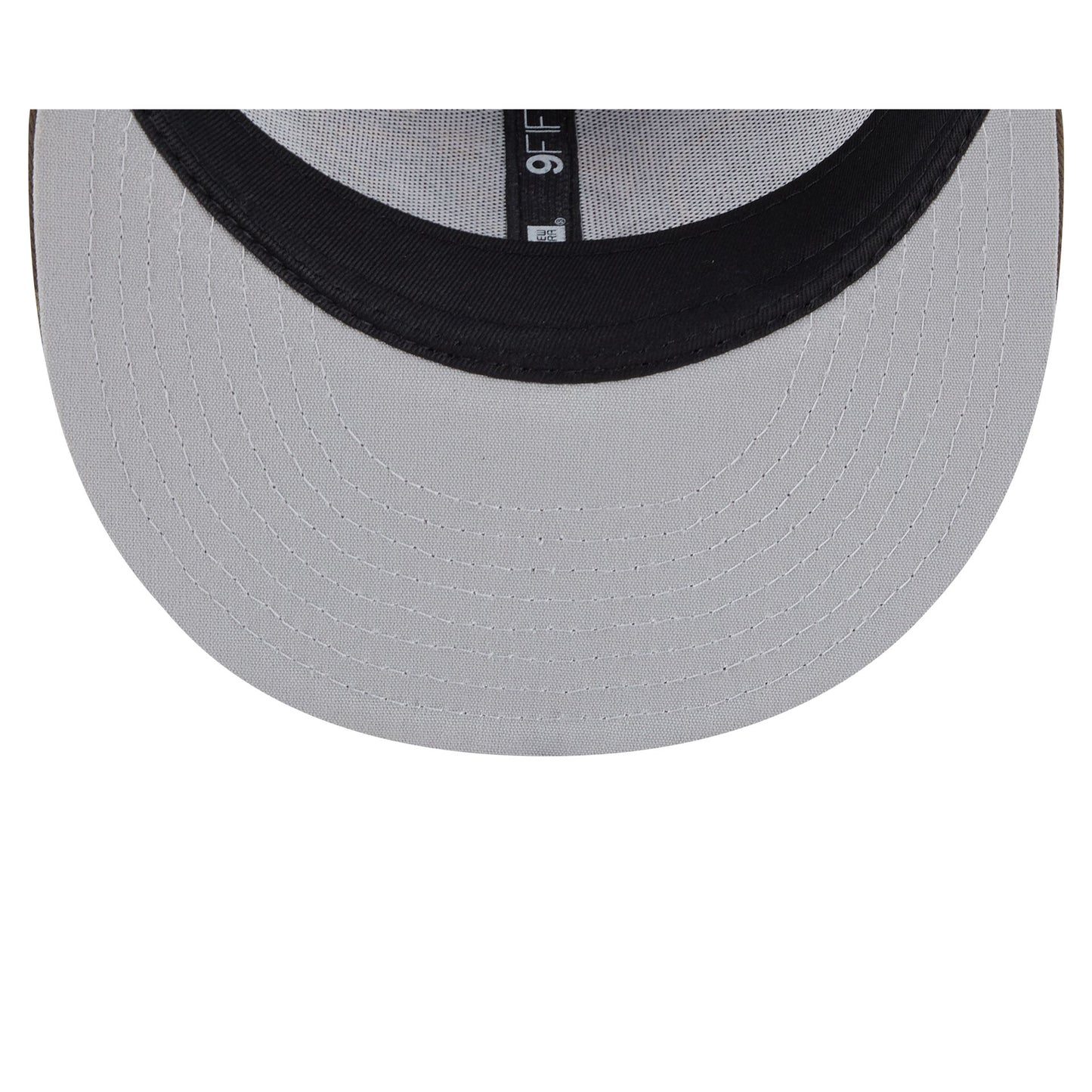 The Nashville Predators Camo 9FIFTY Trucker features an embroidered Predators logo at the front panels with a team tag on a snapback closure at a mesh rear and a gray undervisor.