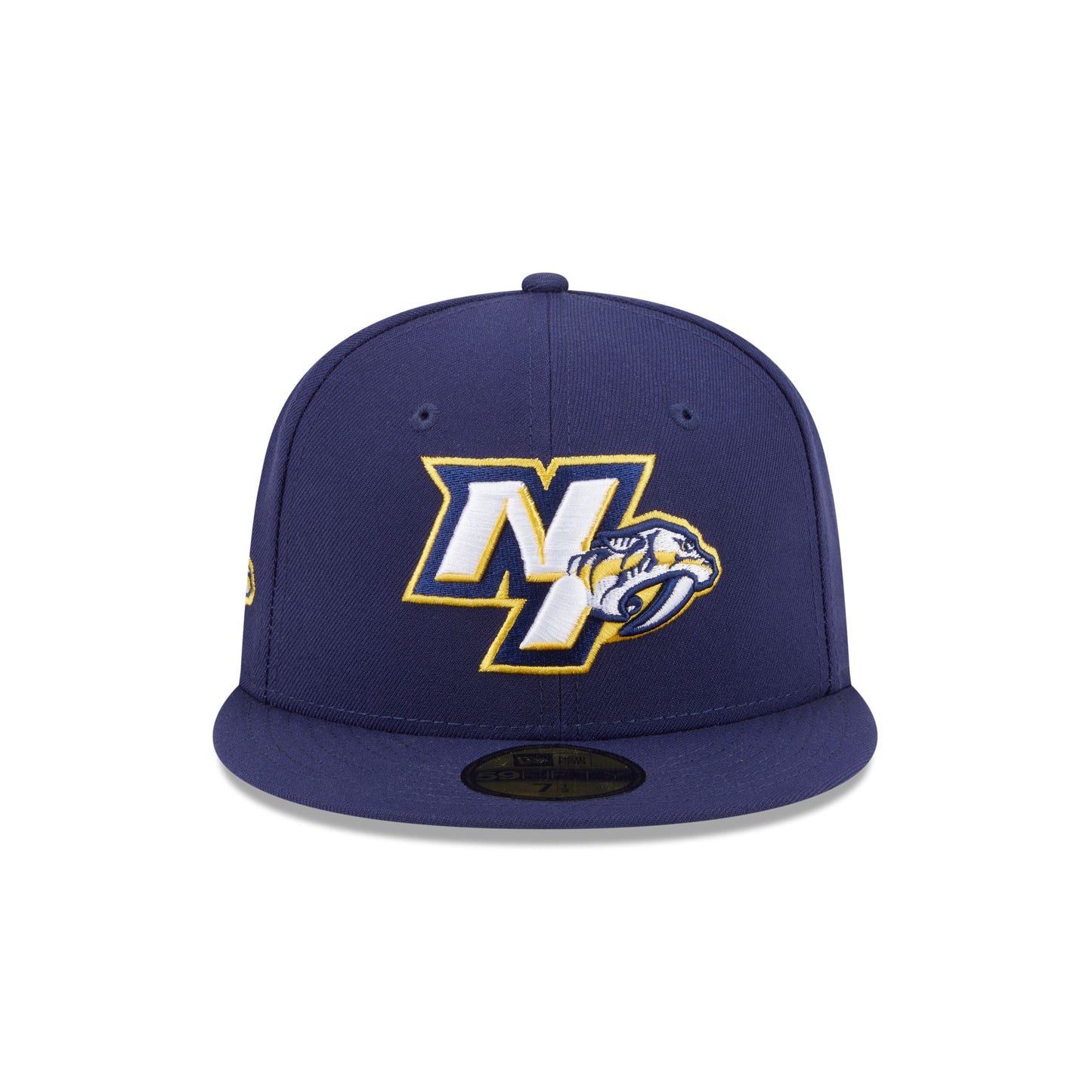 The Nashville Predators Deceptor 59FIFTY Fitted Cap features an embroidered Predators deceptive logo at the front panels with a team logo at the right-wear side. Additional details include a wordmark at the rear, and a gray undervisor.
