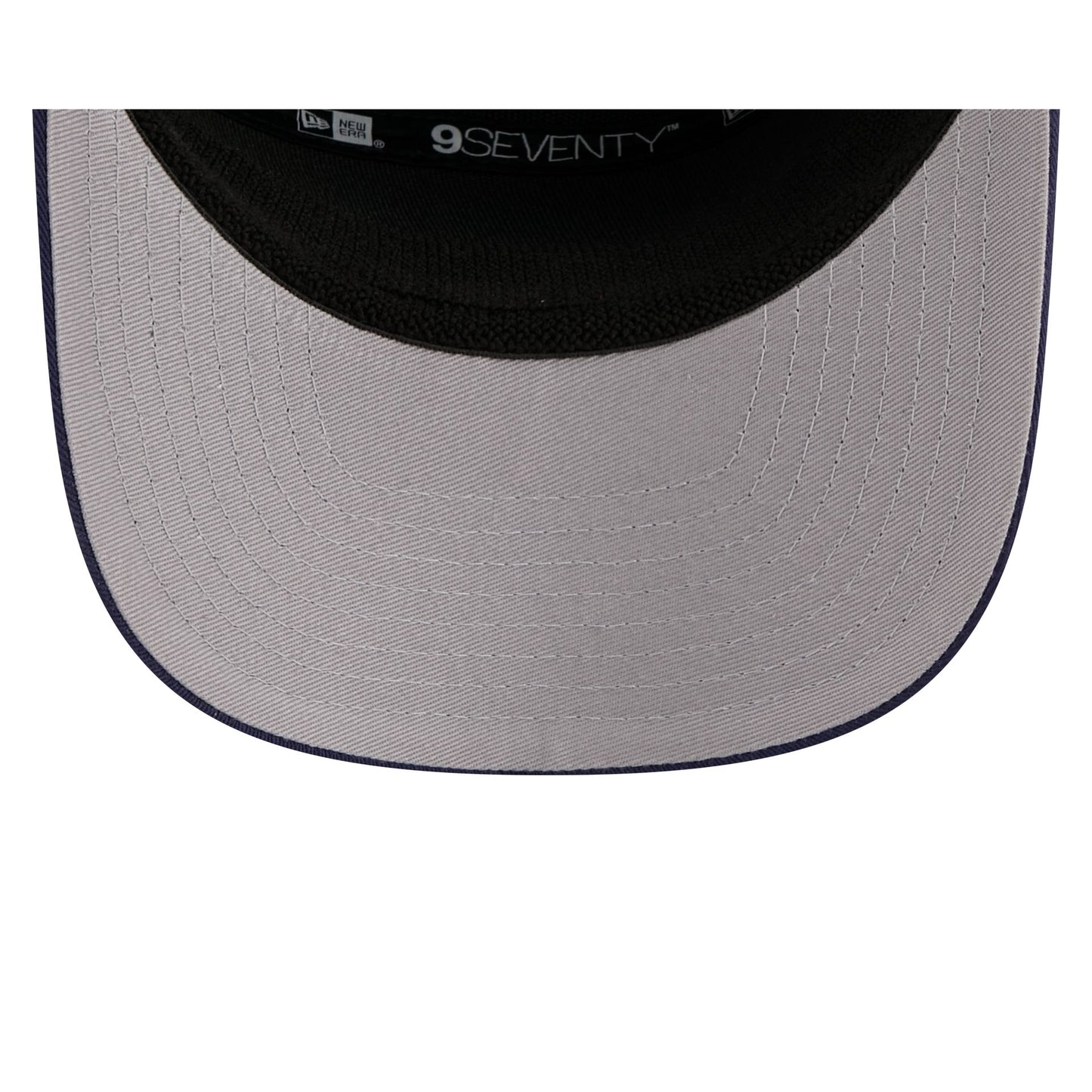 The Nashville Predators Split Panel 9SEVENTY Stretch-Snap features an embroidered Predators logo at the front panel with a split crown construction and a rope at the visor. Additional details include an adjustable stretch-snap closure at the rear and a gray undervisor.