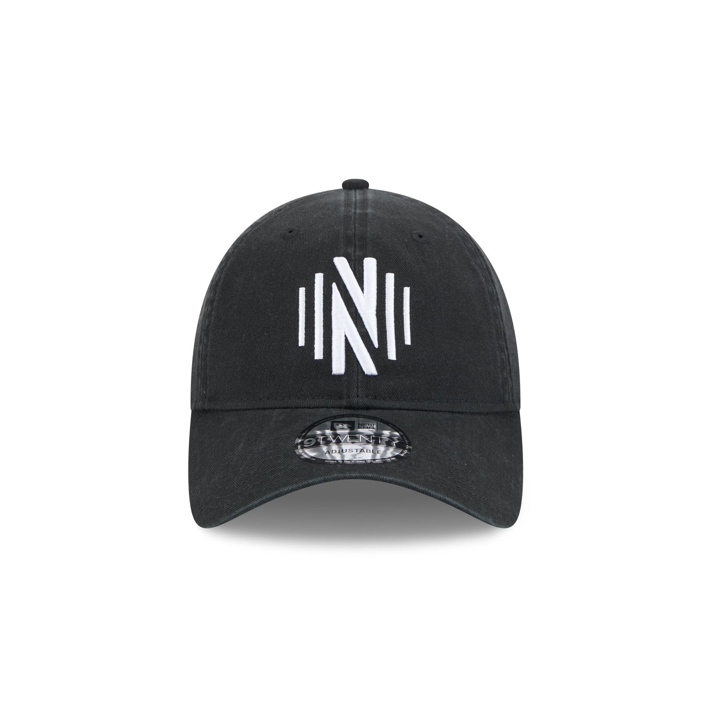 The Nashville SC 2025 MLS Kickoff 9TWENTY Adjustable Cap features an embroidered Nashville SC logo at the front panels with a matching MLS Shield above an adjustable D-Ring closure at the rear and a black undervisor.