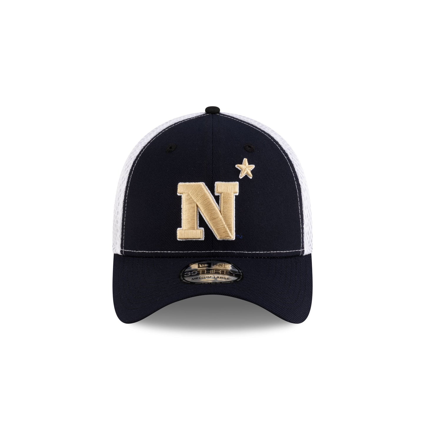 The Navy Midshipmen Neo 39THIRTY Stretch Fit Cap features an embroidered Midshipmen logo at the front panels with a wordmark at the rear.