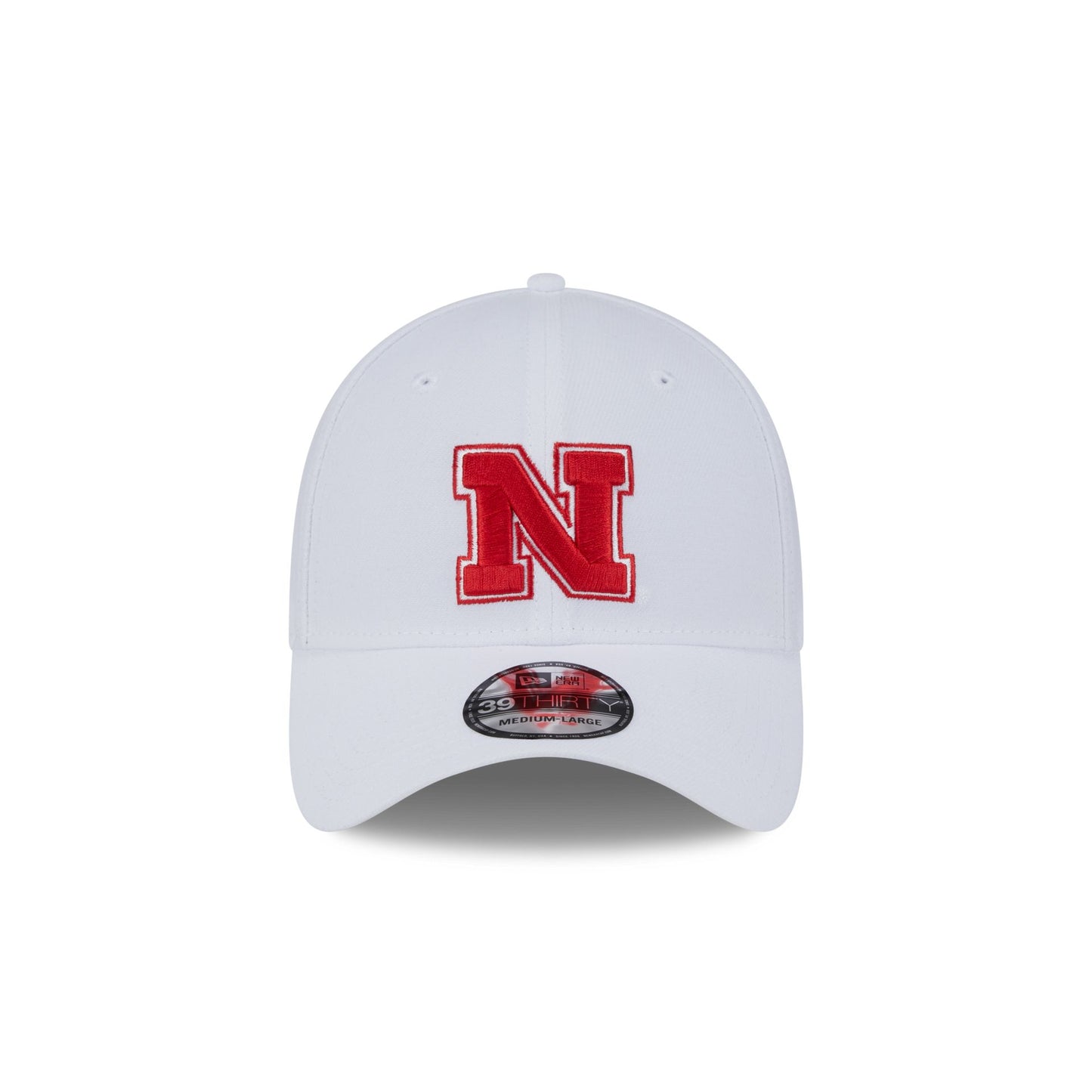 The Nebraska Cornhuskers Optic White 39THIRTY Stretch Fit features an embroidered Cornhuskers logo at the front panels with a team wordmark at the rear.