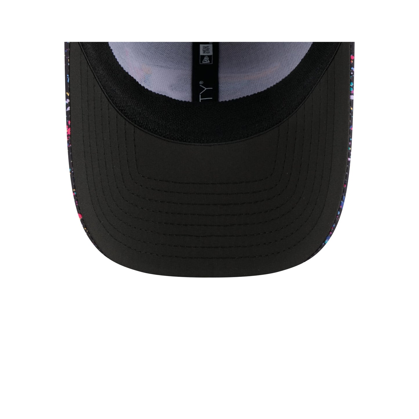 The New England Patriots 2025 Crucial Catch 39THIRTY Stretch Fit Cap features an embroidered Patriots logo at the front paint splatter panels with an NFL Shield at the rear, a Crucial Catch Intercept Cancer patch at the right-wear side, and a black undervisor.