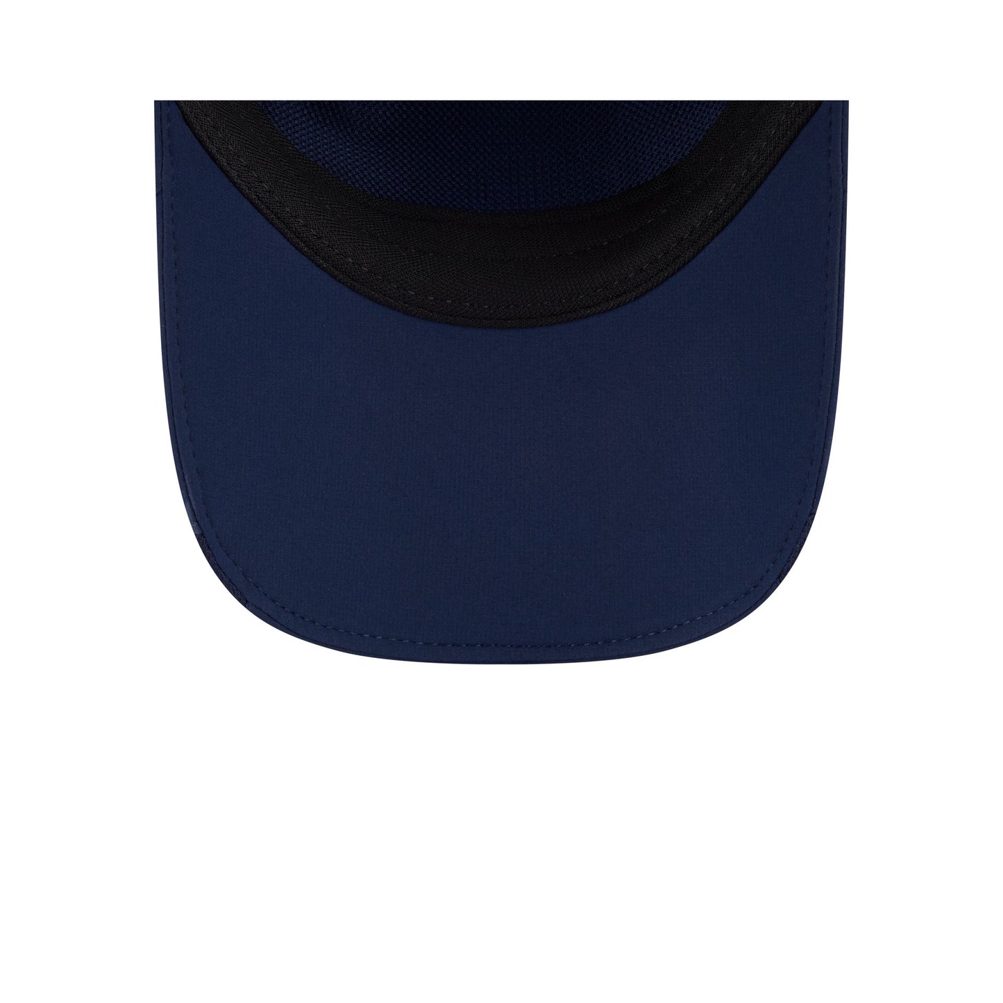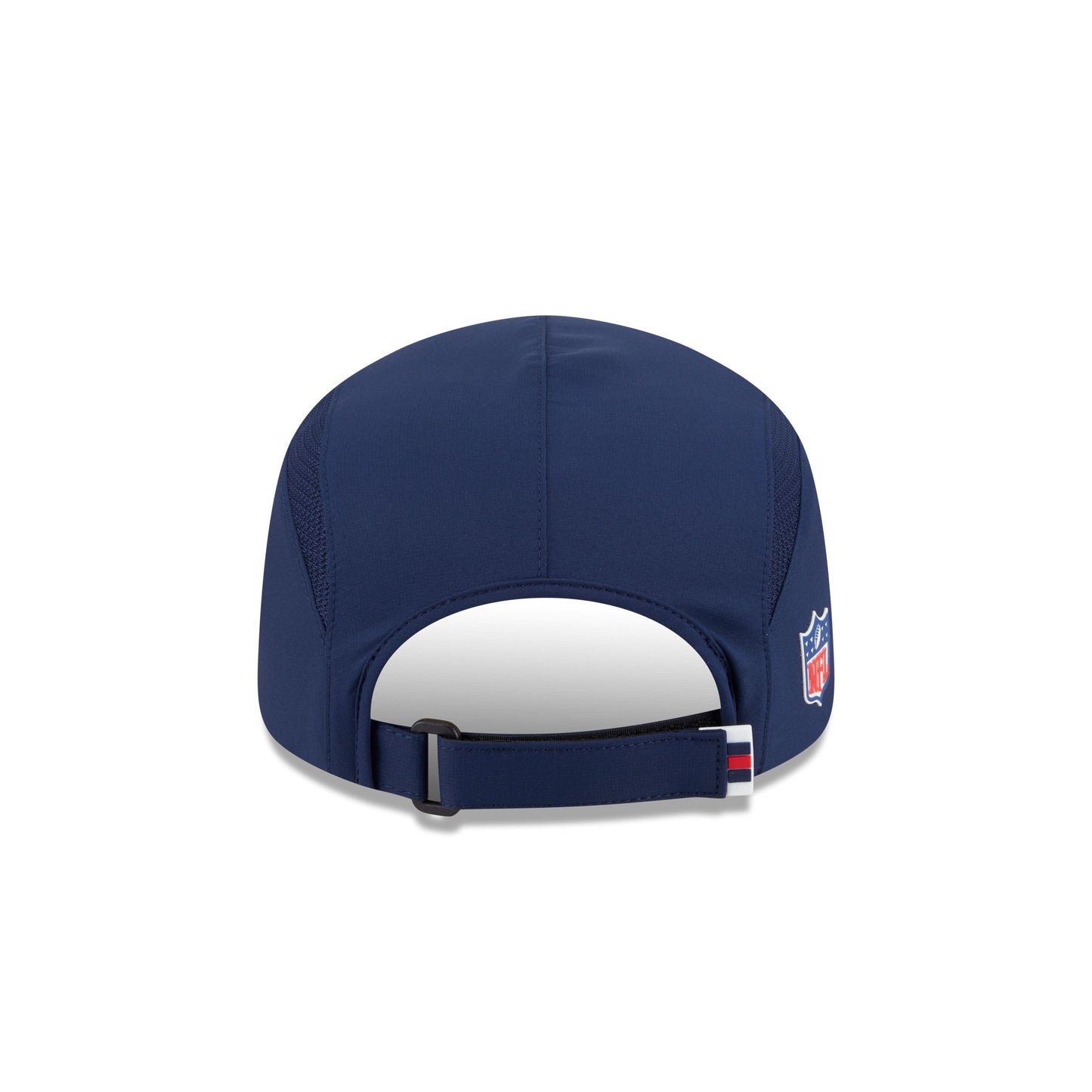The New England Patriots 2025 Sideline Hot Weather Runner Adjustable Cap features a sewn-down silicone Patriots logo patch at the front panels with a water-repellent quill tech fabrication throughout and a quick-dry cushioned sweatband to absorb moisture. Additional details include the Official NFL Shield logo to the right of an adjustable hook-and-loop closure at the rear and mesh accents at the visor sides and side crown panels. The closure is accented with mesh a silicone transfer in the team’s colors.
