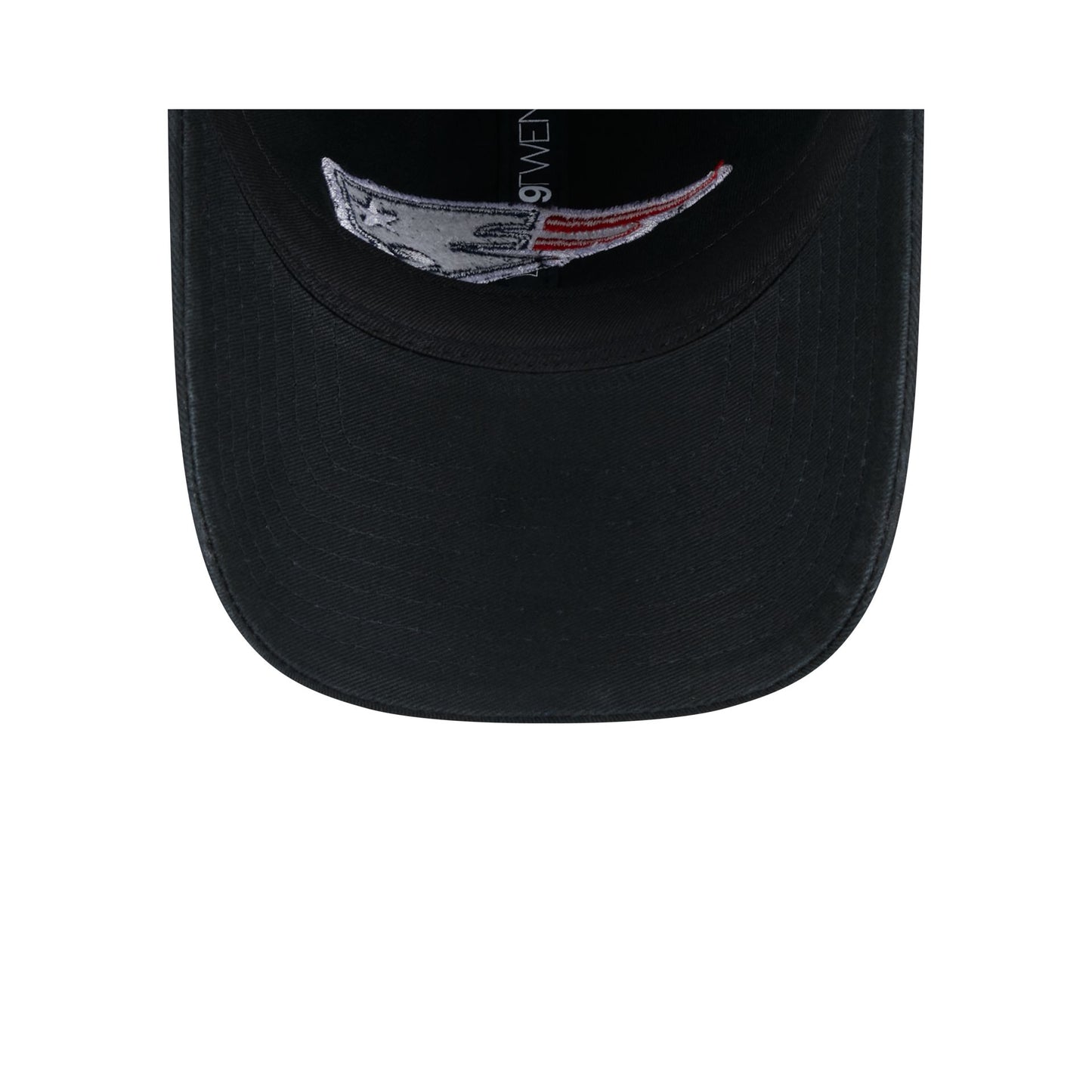 The New England Patriots Black 9TWENTY Adjustable Cap features an embroidered Patriots logo at the front panels with a matching woven team logo tag at the adjustable D-Ring closure at the rear.