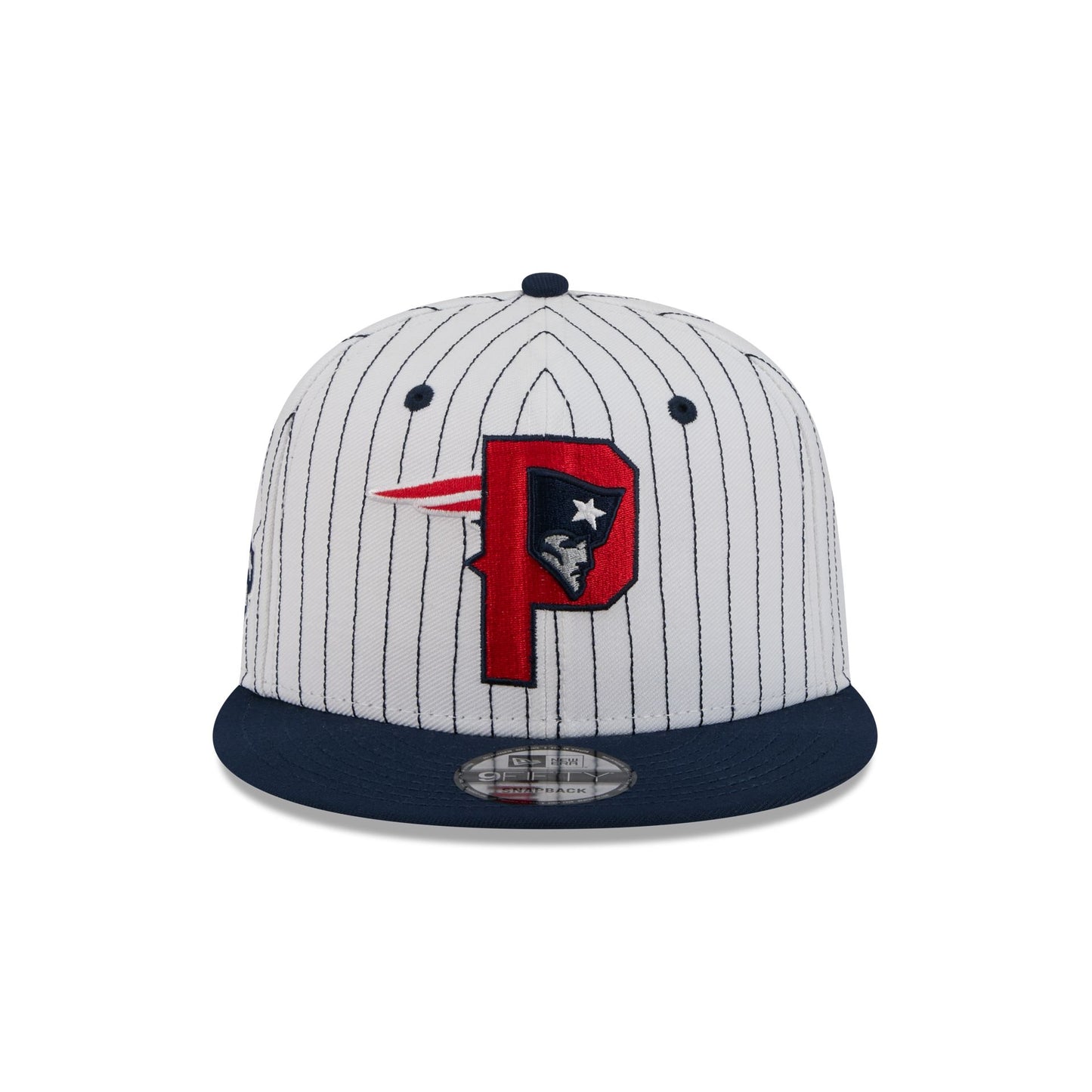 The New England Patriots Deceptor 9FIFTY Snapback features an embroidered Patriots deceptive logo at the front panels with a team logo at the right-wear side. Additional details include a snapback closure at the rear and a gray undervisor.