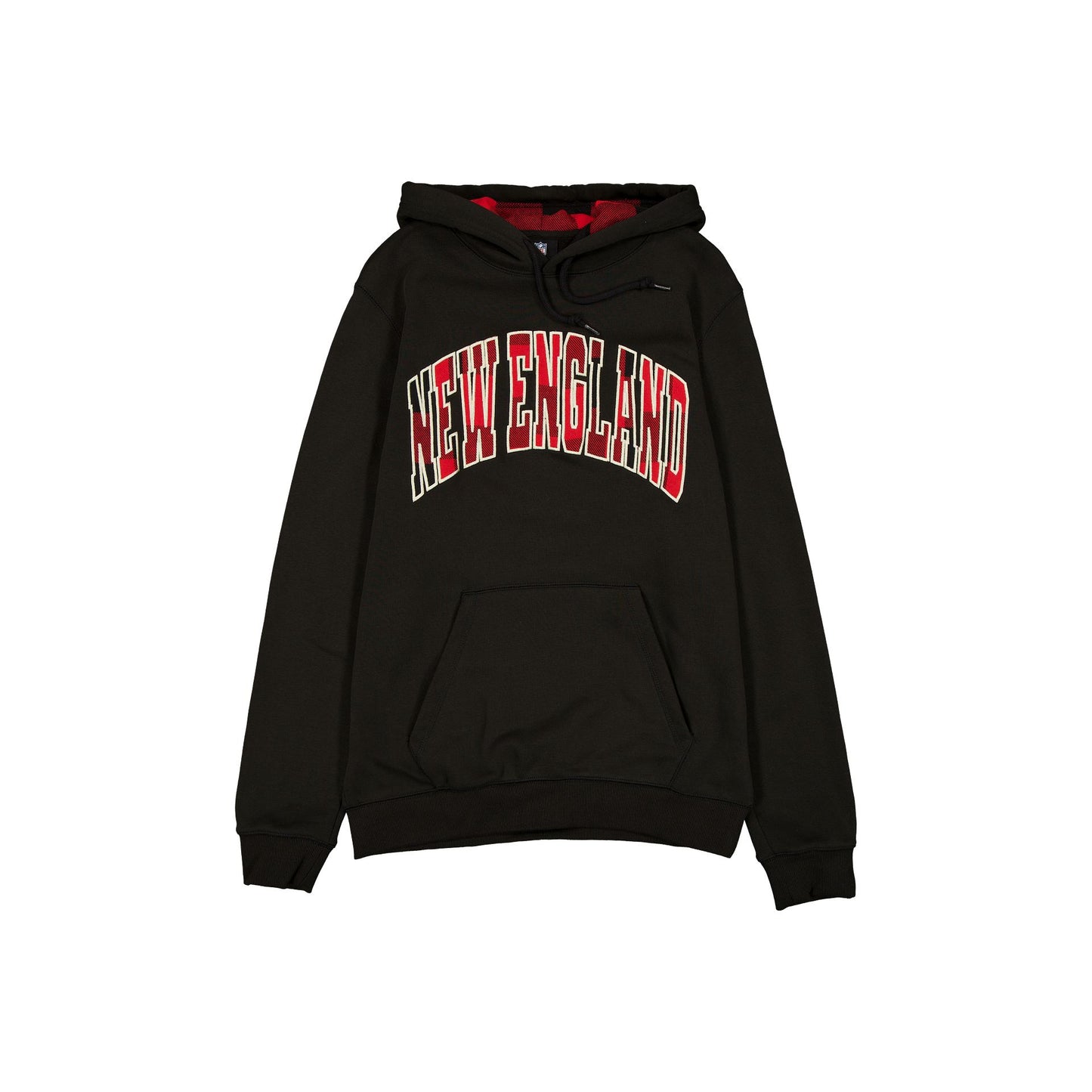 The New England Patriots Evergreen Check Hoodie features an embroidered applique Patriots checkered wordmark at the front with a matching interior hood and logo at the rear. Additional details include kangaroo pockets and adjustable drawstrings at the hood.