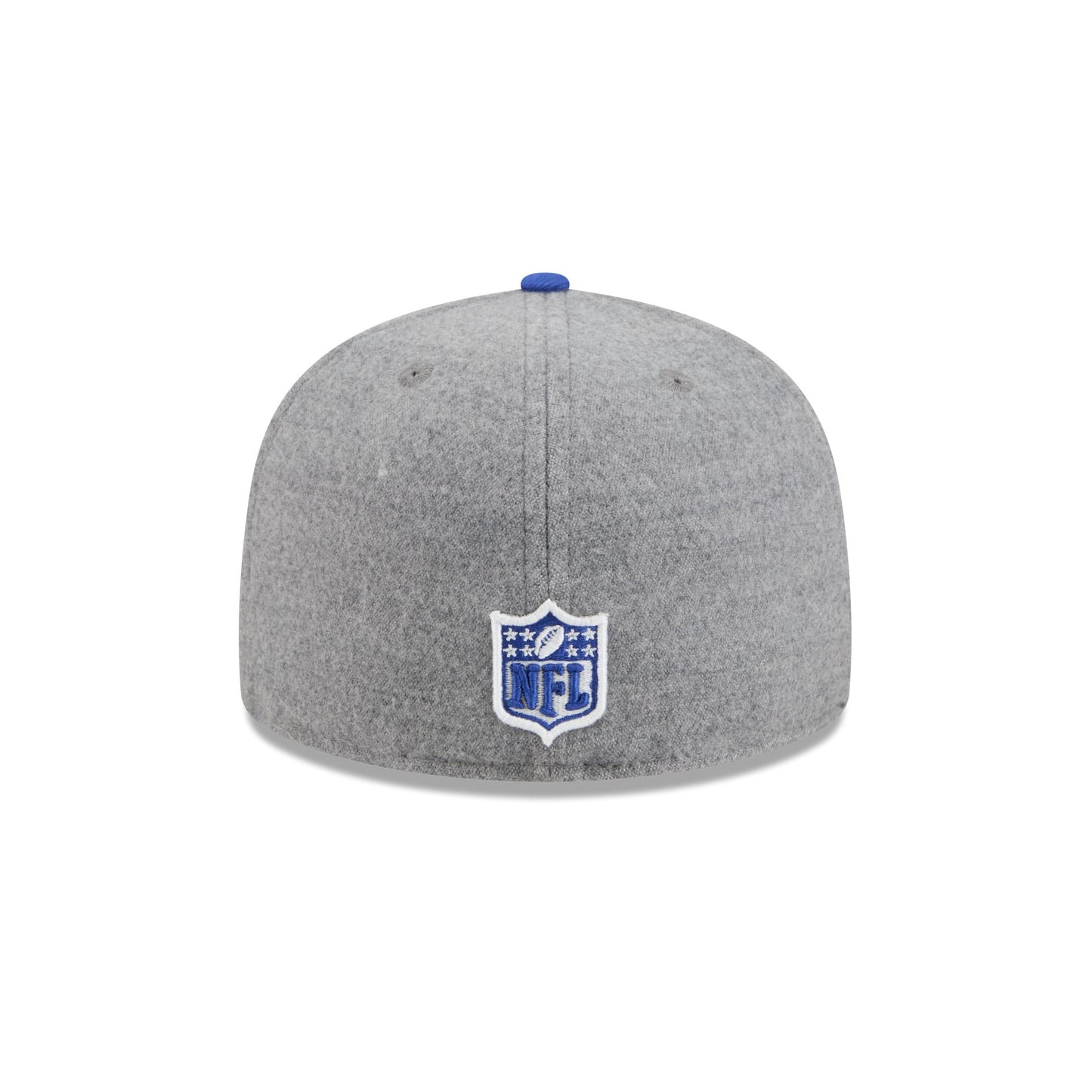 The New England Patriots Heather Gray Wool 59FIFTY Fitted Cap features an embroidered Patriots Historic logo and conference pin at the front panels against a wool fabrication throughout. Additional details include a helmet graphic at the right-wear side, an NFL Shield logo at the rear, and a green undervisor.