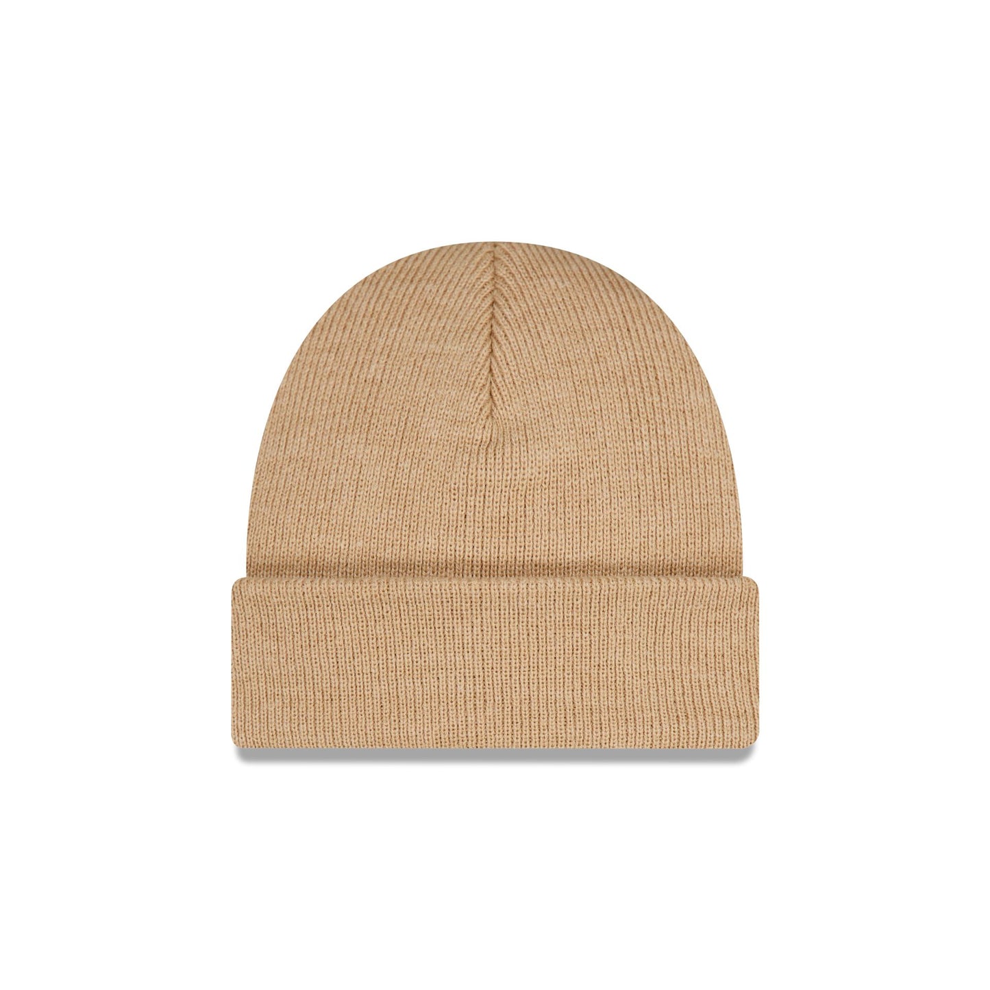 The New Era Beige Short Cuff Knit Beanie features an embroidered New Era Flag at the left-wear side.