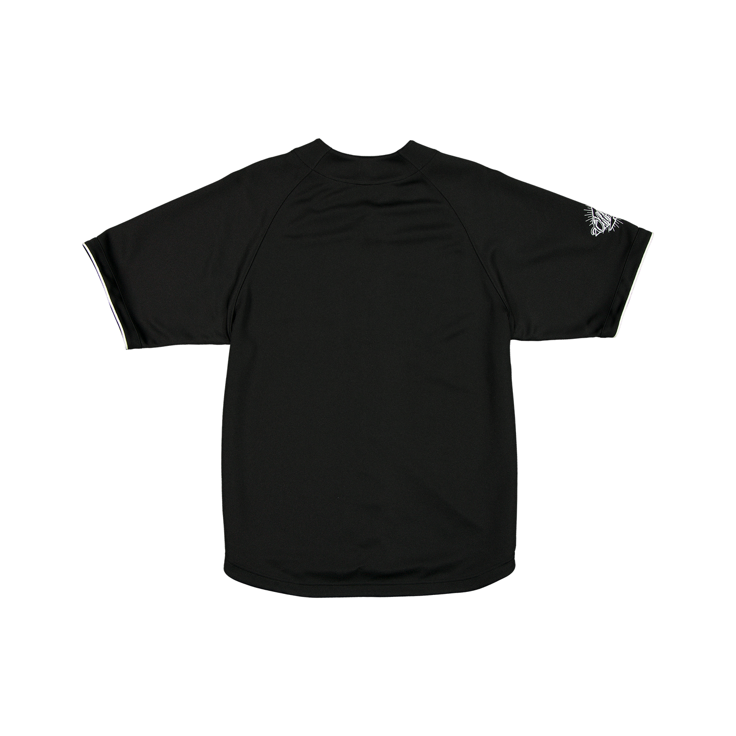The New Era Branded Batter's Eye Raglan Baseball Black Jersey features: