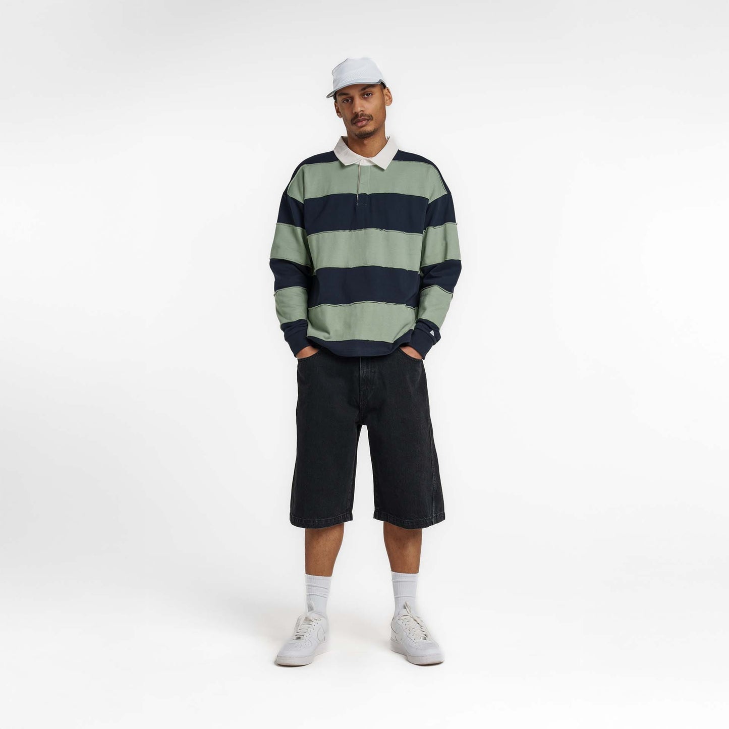 The New Era Branded Cut & Sew Block Navy Long Sleeve Rugby Shirt features: