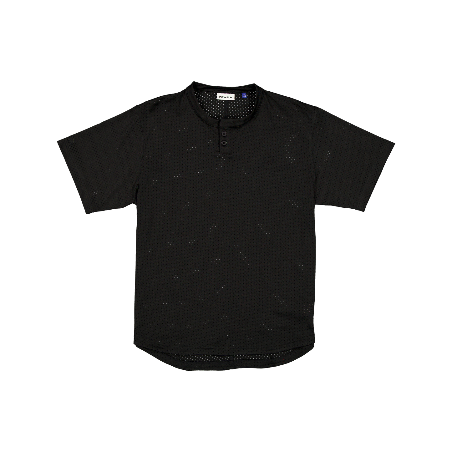 The New Era Branded Galvin 2-Button Mesh Henley Black Jersey features:
