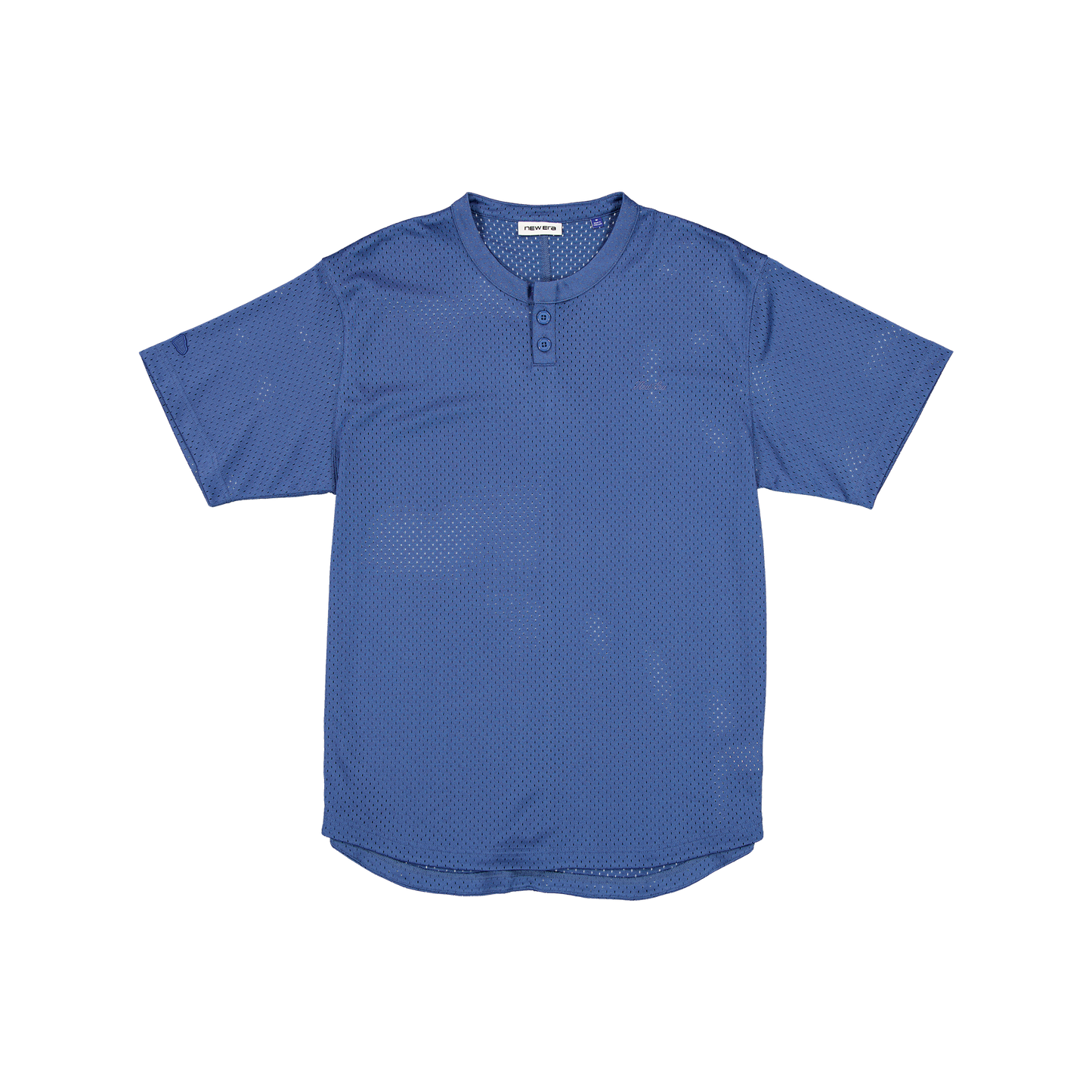 The New Era Branded Galvin 2-Button Mesh Henley Indigo Jersey features: