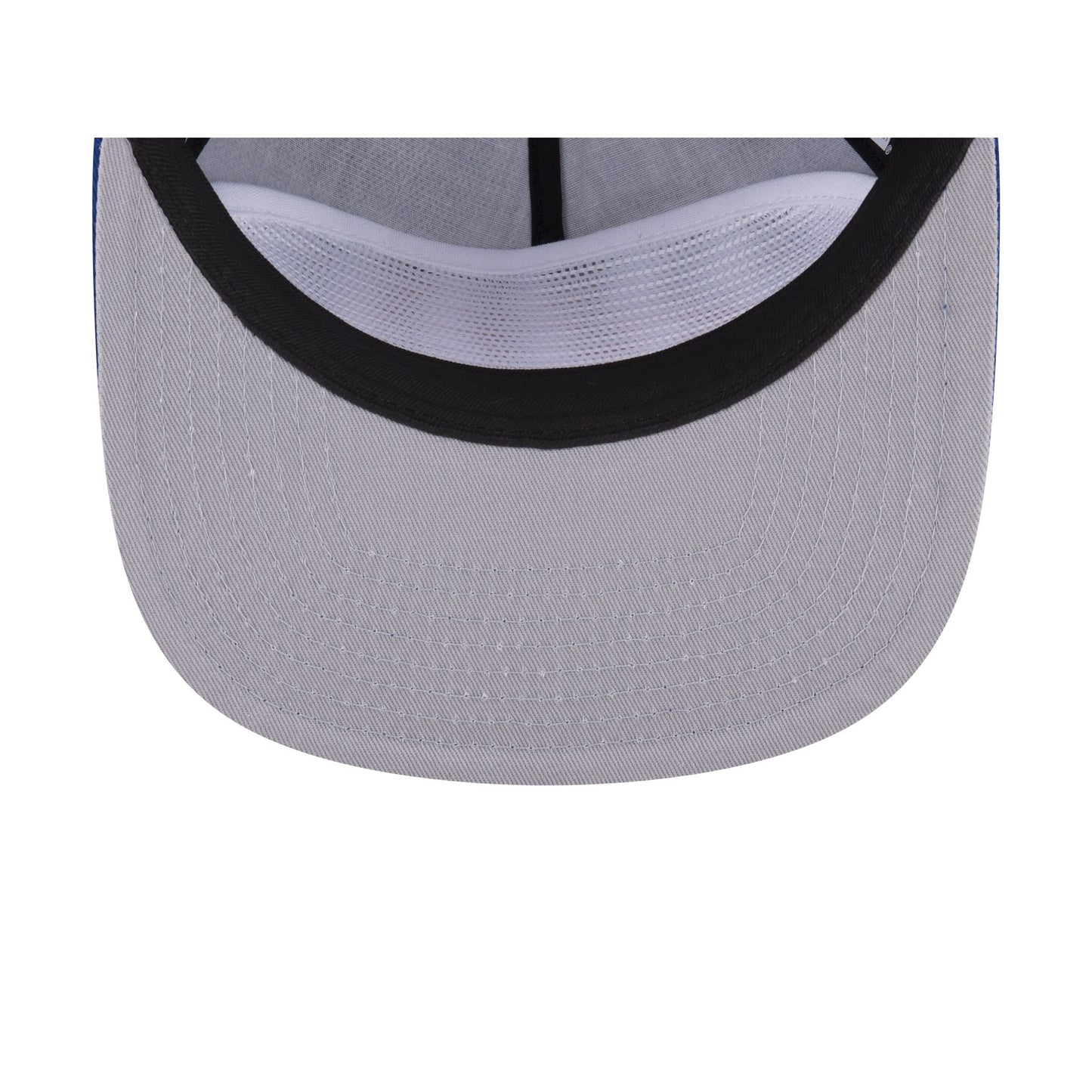 The New Era Cap American Flag Blue Golfer features an embroidered American flag at the front panels with a snapback closure at the rear and a gray undervisor.