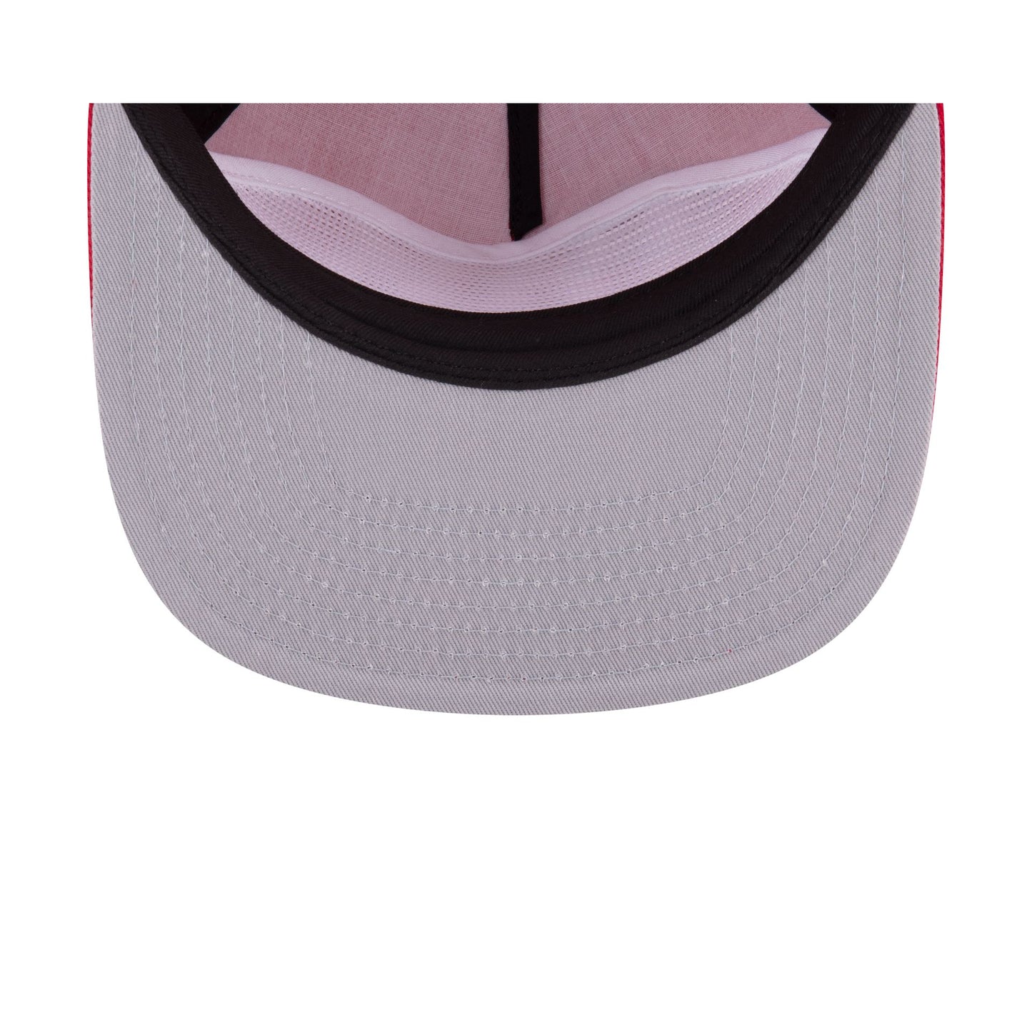 The New Era Cap American Flag Red Golfer features an embroidered American flag at the front panels with a snapback closure at the rear and a gray undervisor.