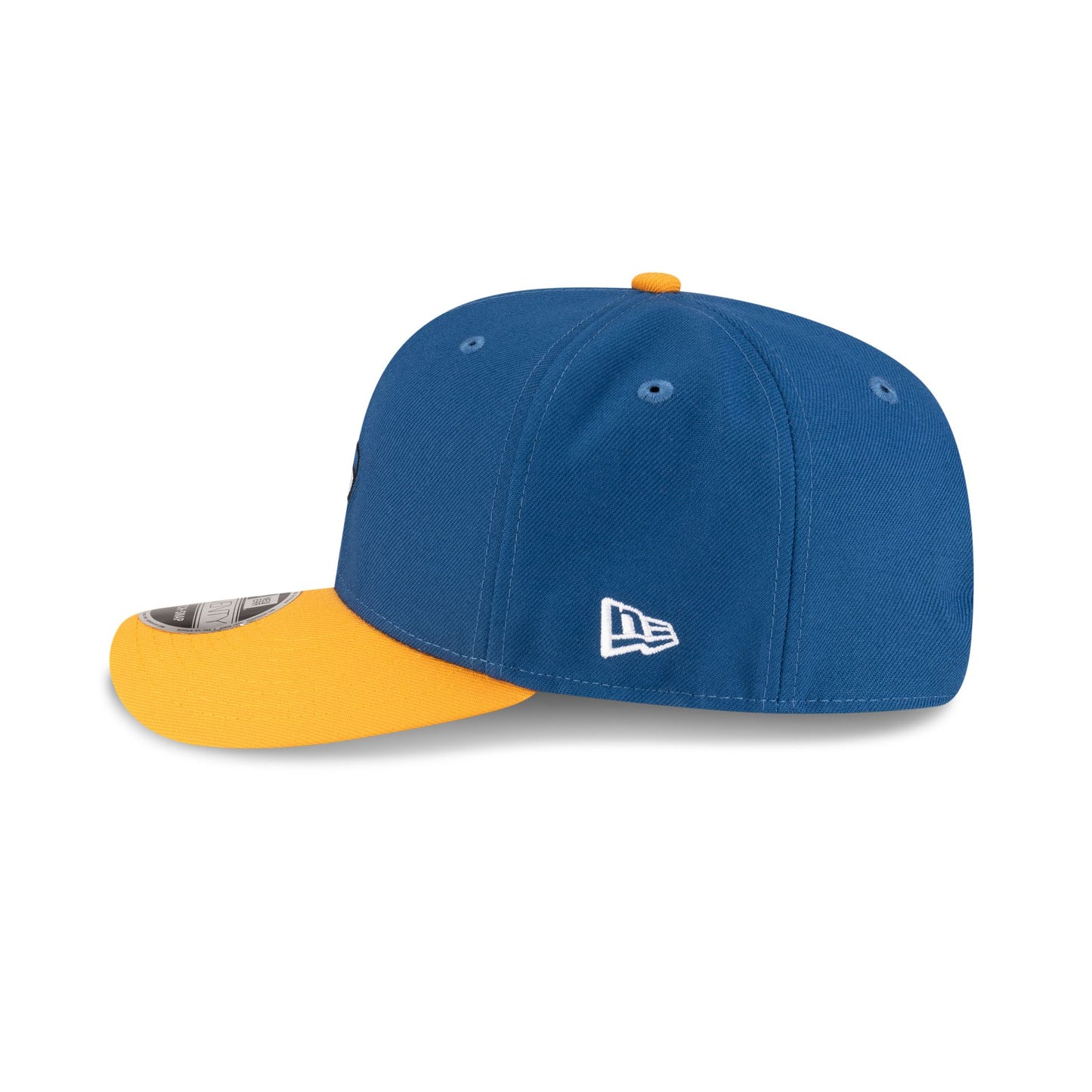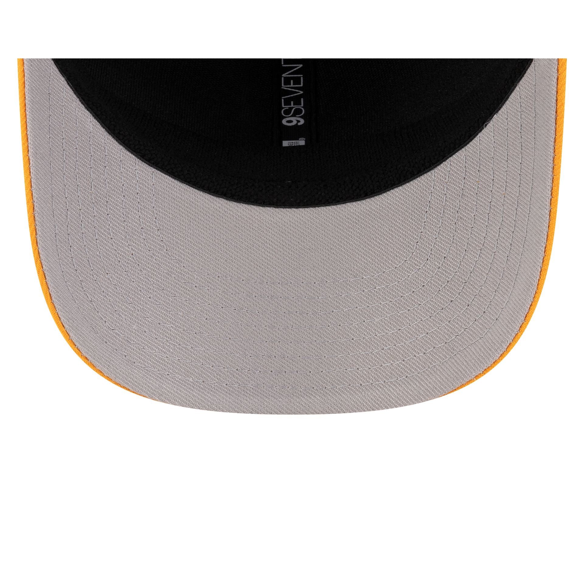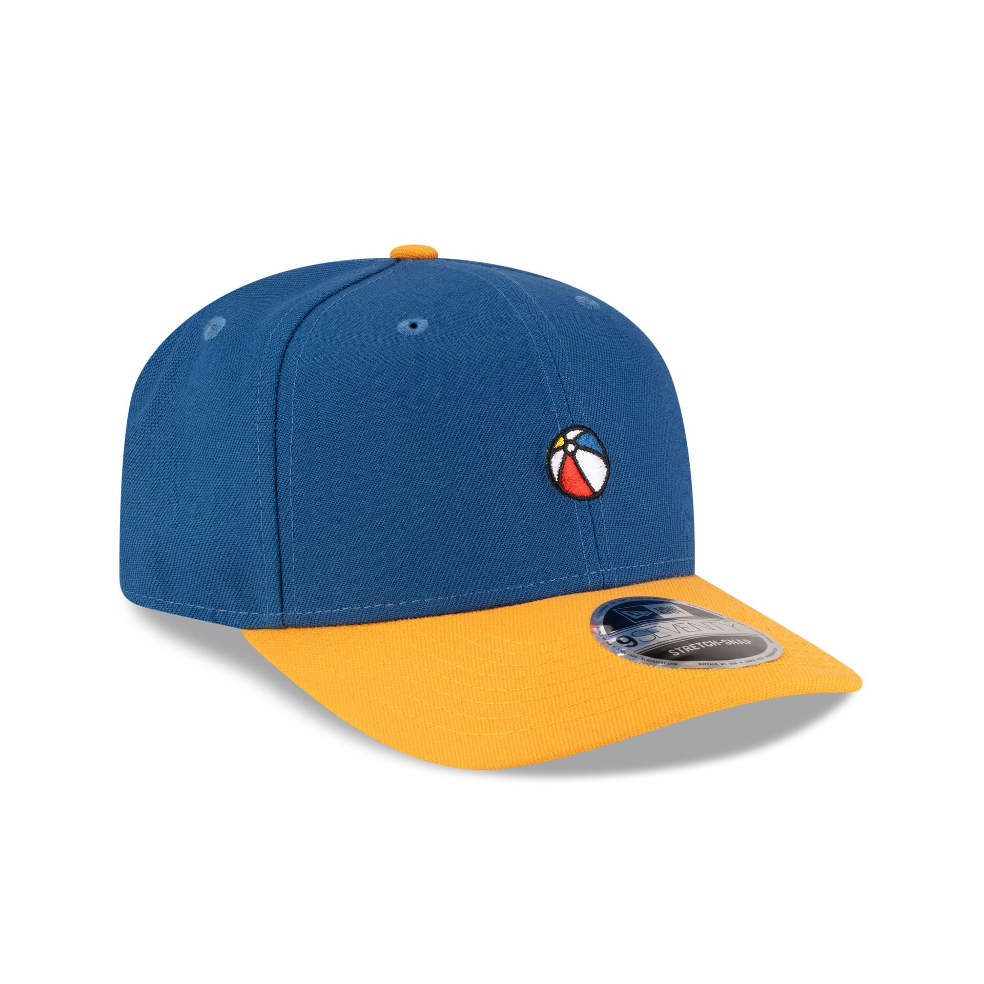 The New Era Cap Beach Ball 9SEVENTY Stretch-Snap features an embroidered beach ball icon at the front panels with New Era Flag at the left-wear side, a yellow visor, a gray undervisor, and a snapback closure at the rear.