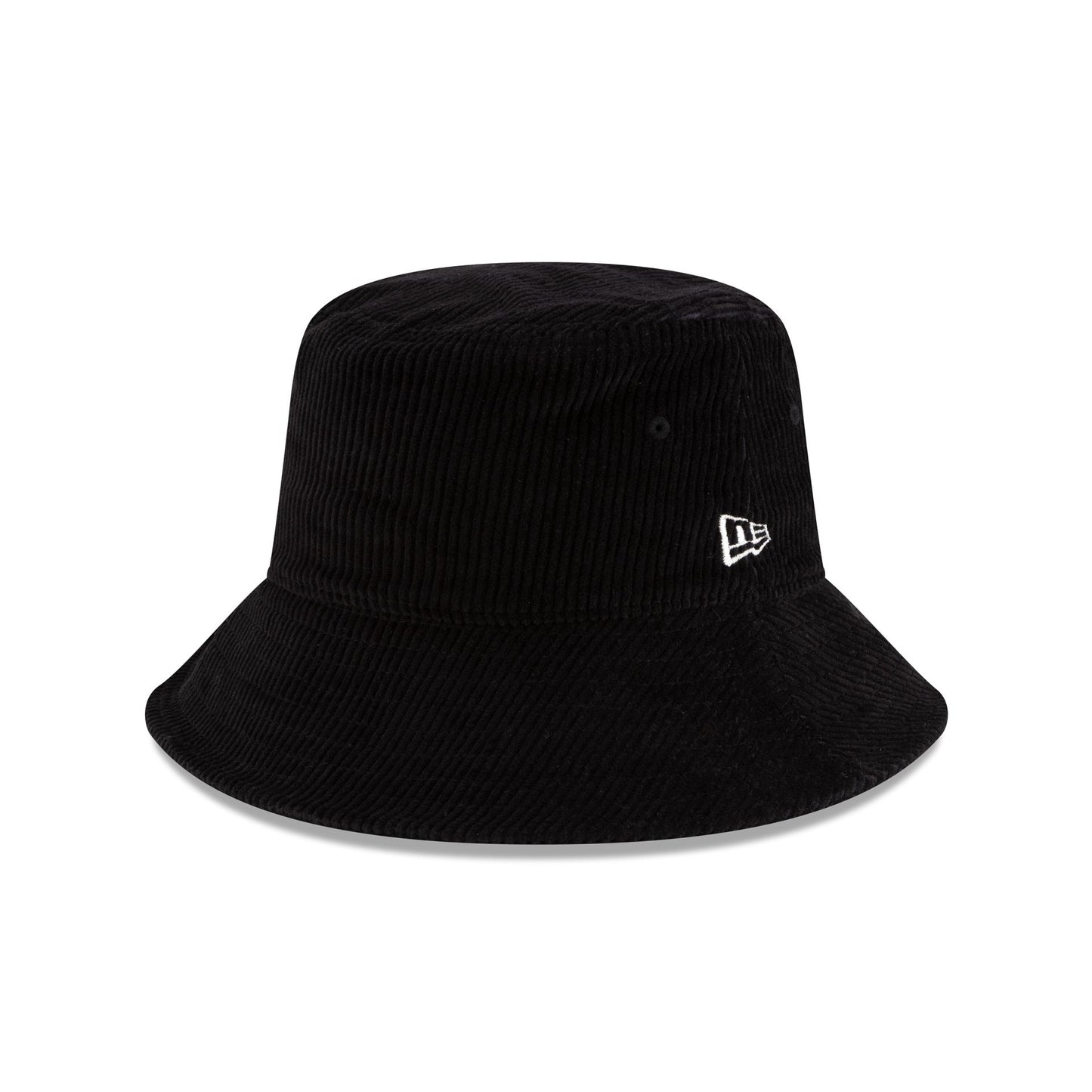 The New Era Cap Black Corduroy Bucket Hat features a New Era corduroy fabrication throughout.