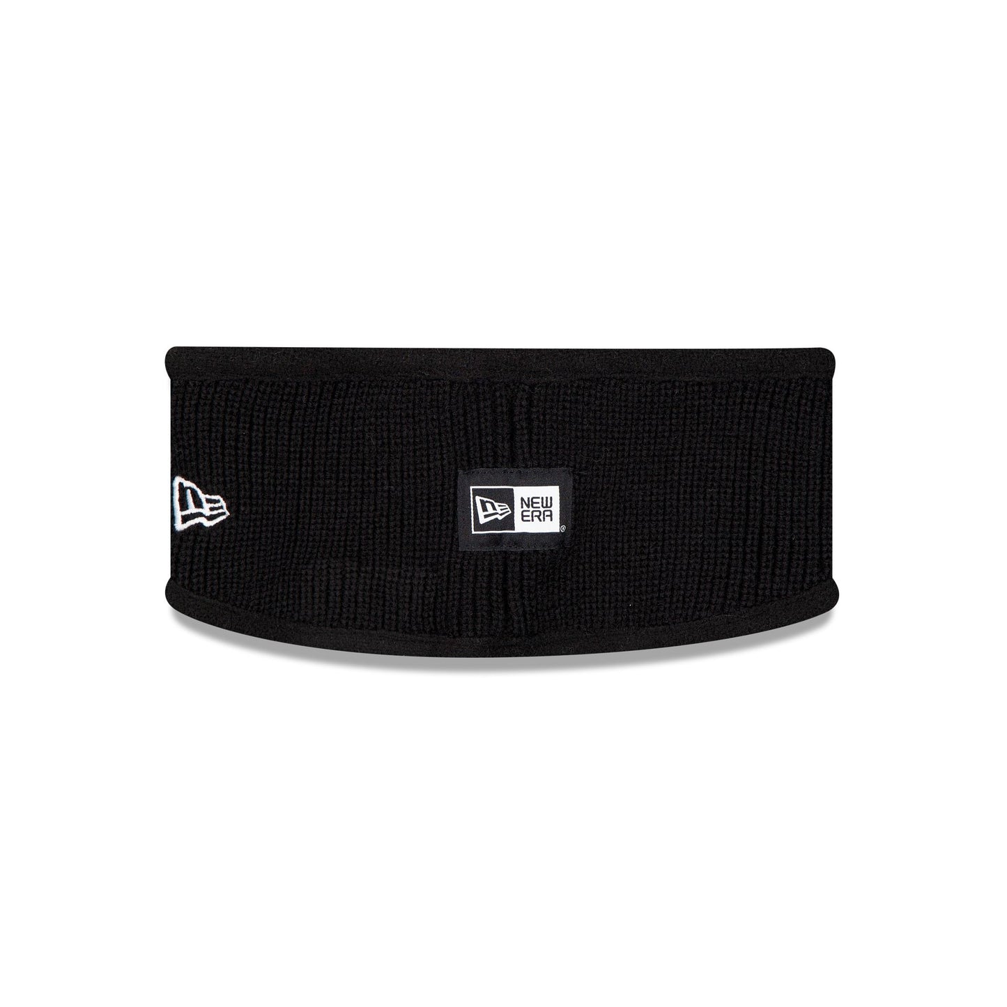 The New Era Cap Black Knit Ear Warmer features an embroidered New Era Flag at the left-wear side with a reflective woven New Era box logo at the rear. Additional details include a ribbed knit fabrication at the exterior and a soft fleece fabrication at the interior.