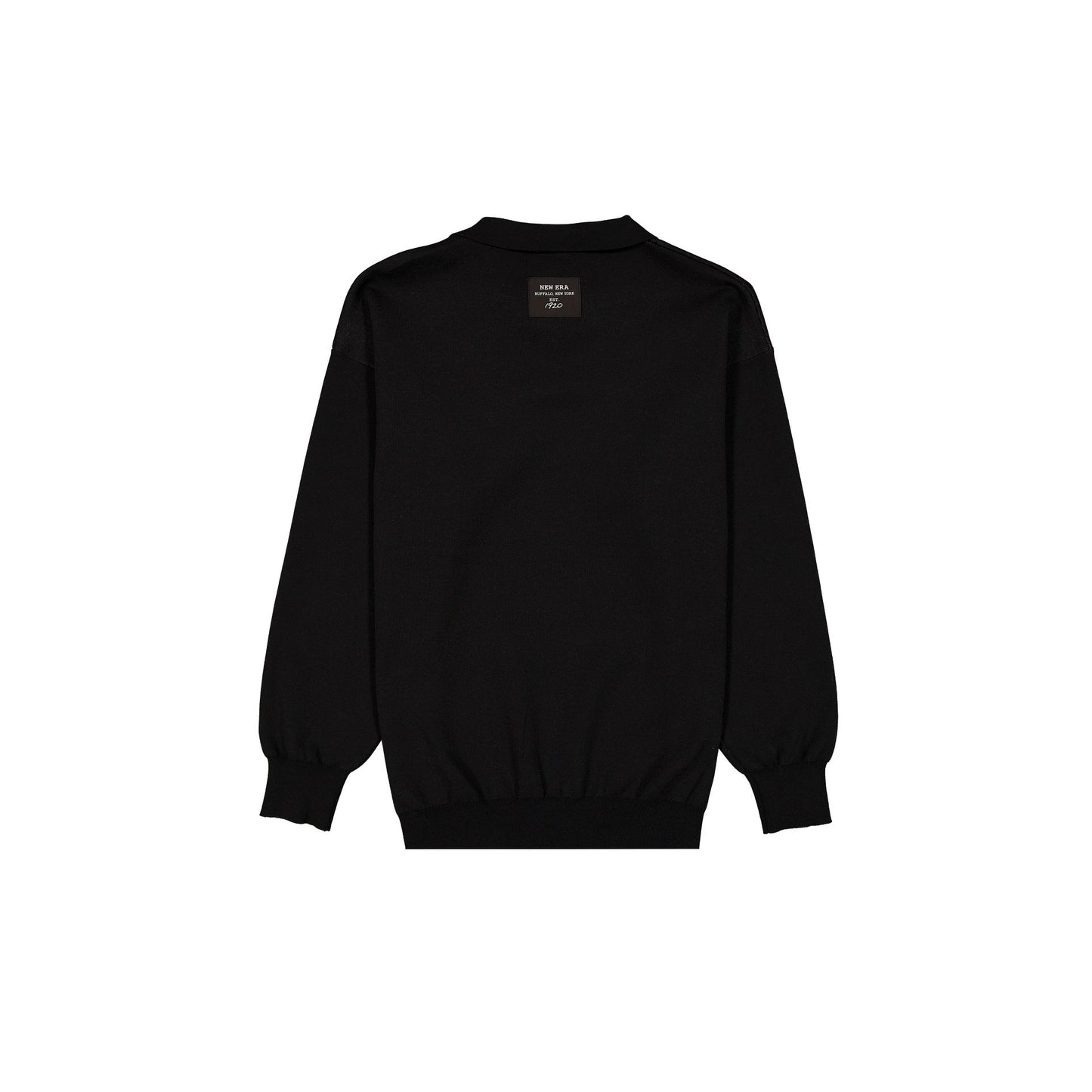 The New Era Cap Black Knit Long-Sleeve Polo features an embroidered New Era applique wordmark at the front with a quarter-zip closure.