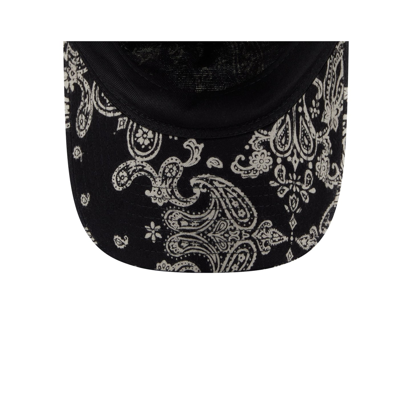 The New Era Cap Black Paisley 9TWENTY A-Frame Strapback is made of a specialty Japanese milled paisley fabric. Additional details include a matching undervisor and a snapback closure at the rear.