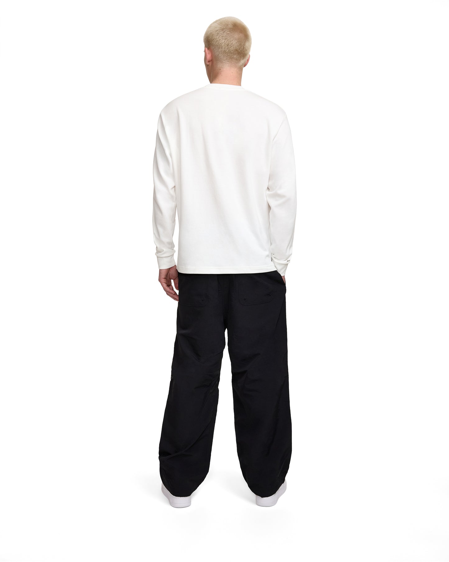 The New Era Cap Black Parachute Pants features an embroidered New Era at the left leg with snap button pockets at the rear and adjustable pant cuffs.