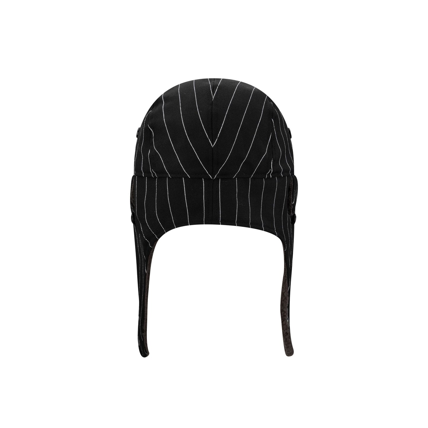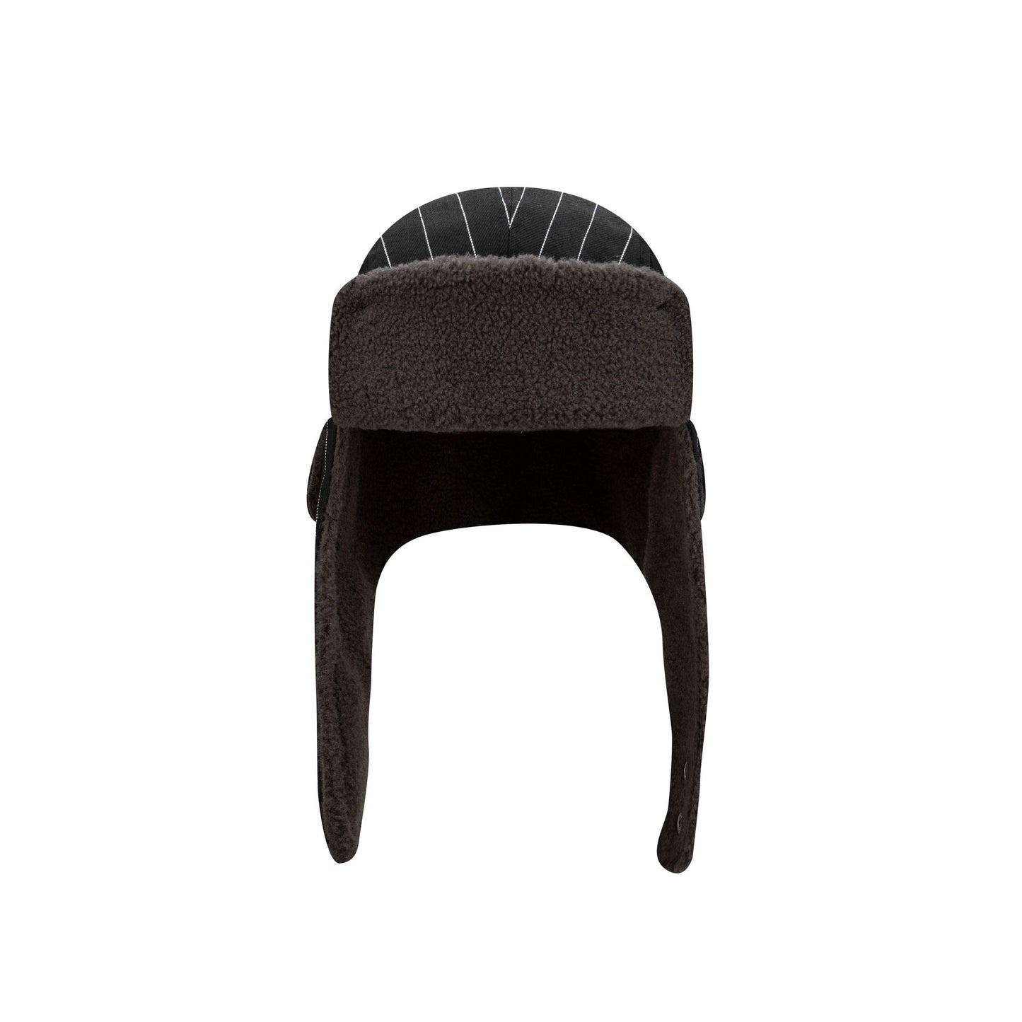 The New Era Cap Black Stripe Fashion Trapper Hat features an embroidered New Era flag at the left-wear side, ear covers with a button snap closure, and a pinstripe fabrication throughout.