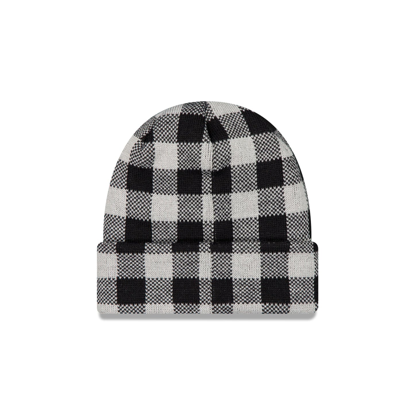 The New Era Cap Block Check Black Cuff Knit features an embroidered New Era Script emblem at the front panels with the New Era Flag embroidered at the left-wear side.