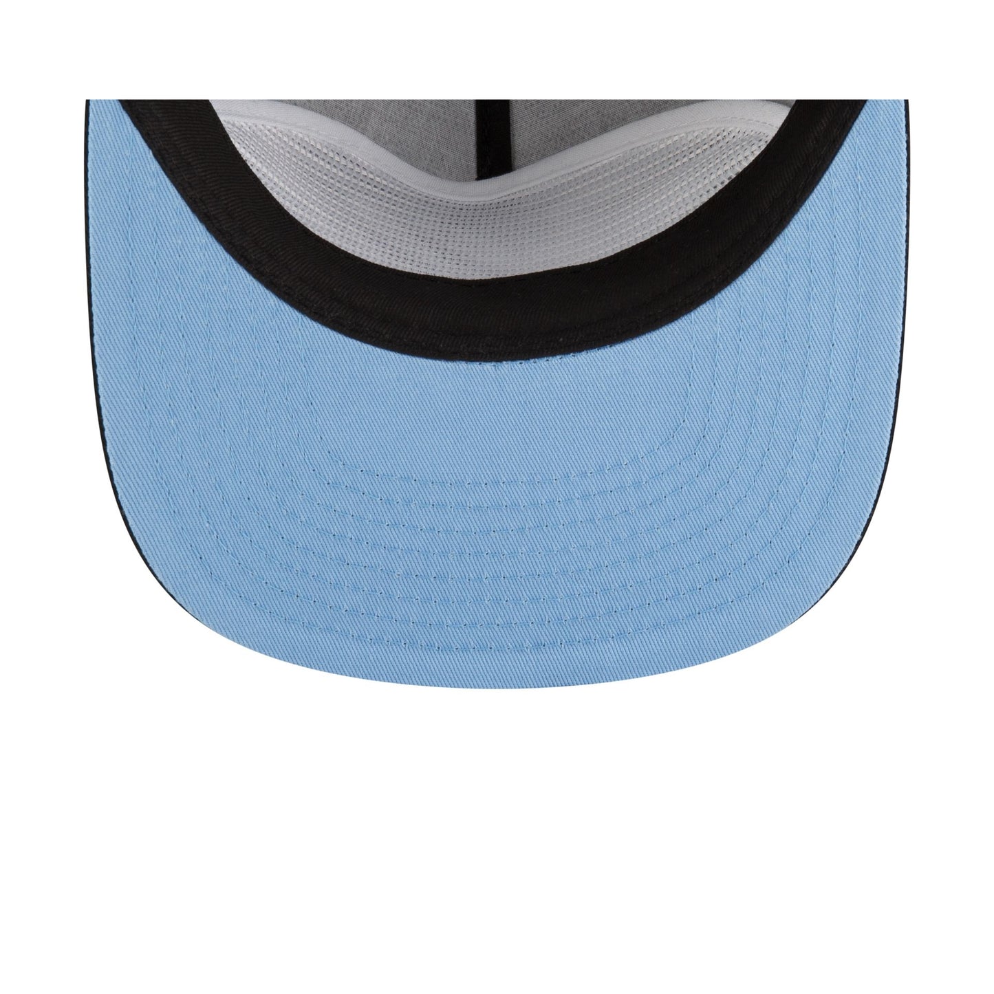 The New Era Cap Celly Golfer Hat features an embroidered Celly script at the front panels with a Buffalo patch at the right-wear side and a blue undervisor.
