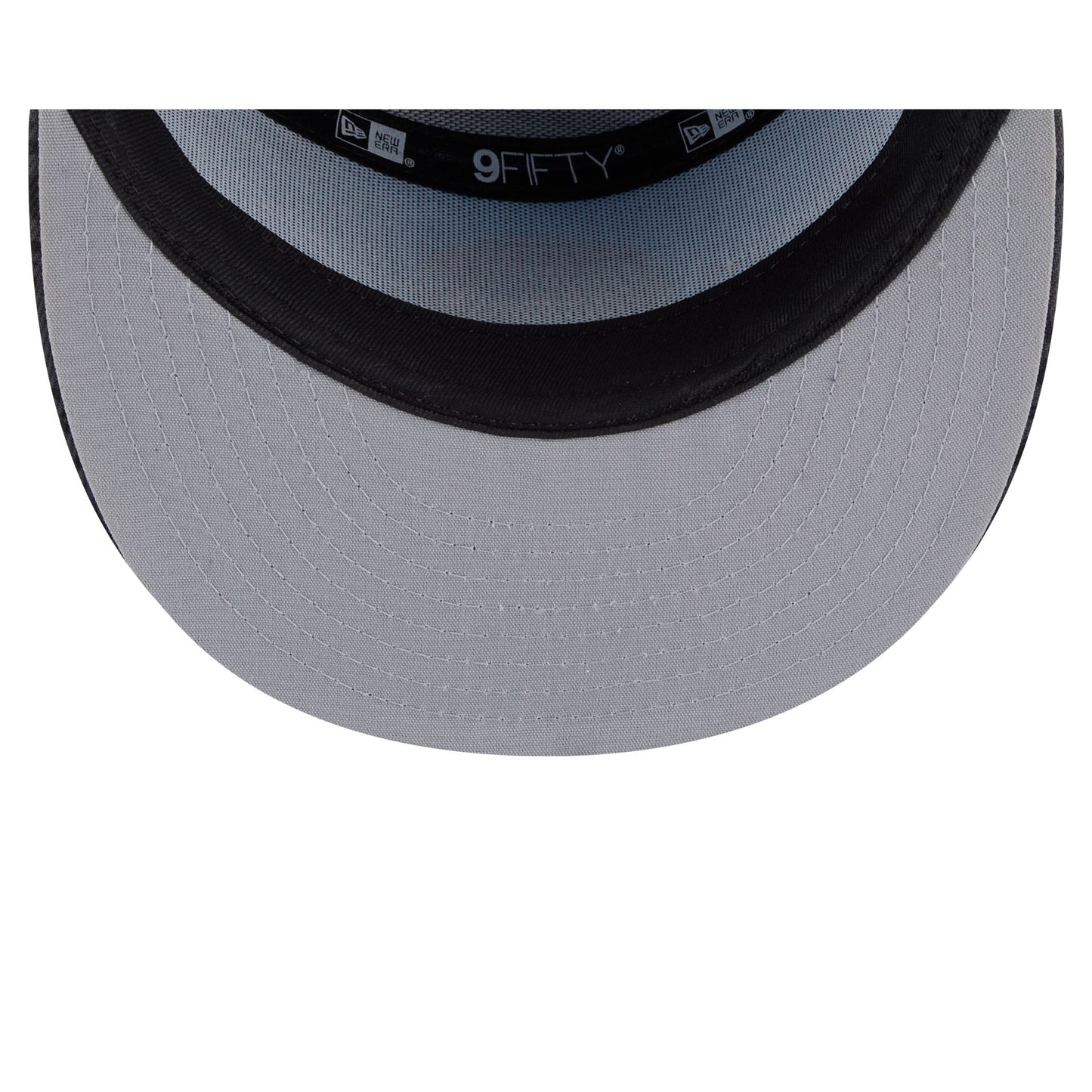 The New Era Cap Cerulean Blue Split Panel 9FIFTY Snapback features a lenticular heat-sealed New Era Bug logo at the front panels against a split-crown construction with sublimation throughout. Additional details include a branded tag on a snapback closure at the rear and a gray undervisor.