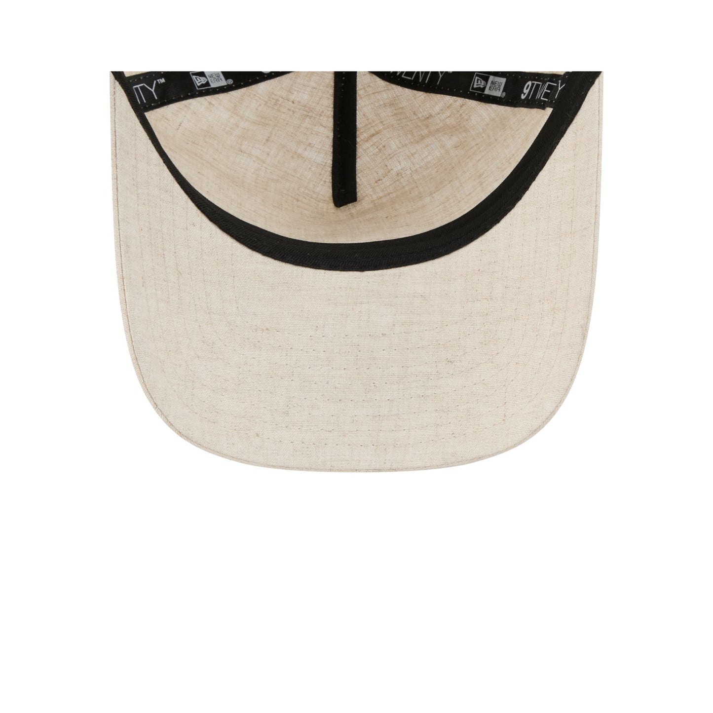 The New Era Cap Chrome White 9TWENTY A-Frame Adjustable Cap features an embroidered New Era Flag at the left-wear side and an adjustable D-Ring closure at the rear. This cap is made from a cotton linen blend, intended for when the weather starts to warm up.