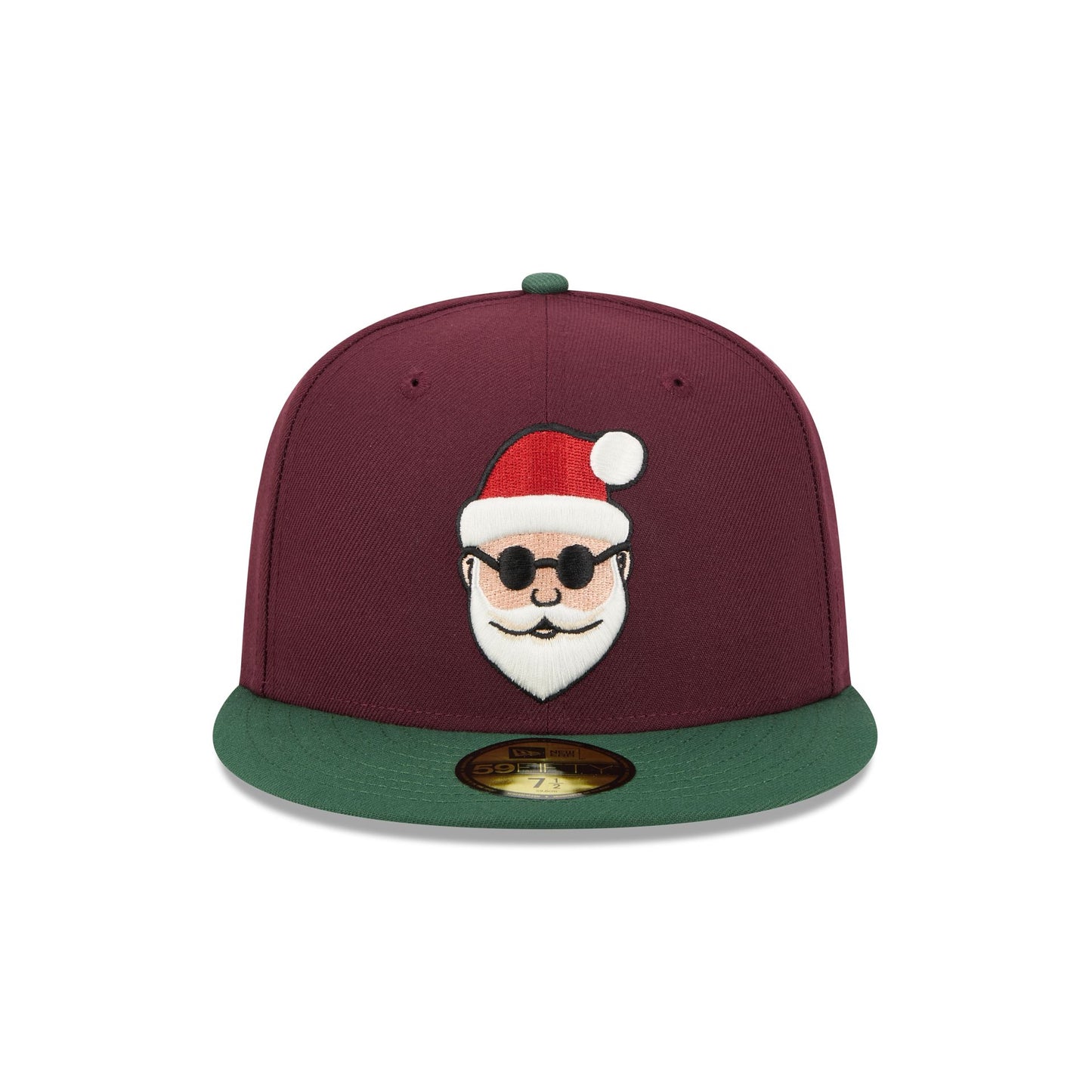 The New Era Cap Cool Santa 59FIFTY Fitted Cap features an embroidered Santa character with sunglasses at the front panels and a "Ho Ho Ho" wordmark at the rear.