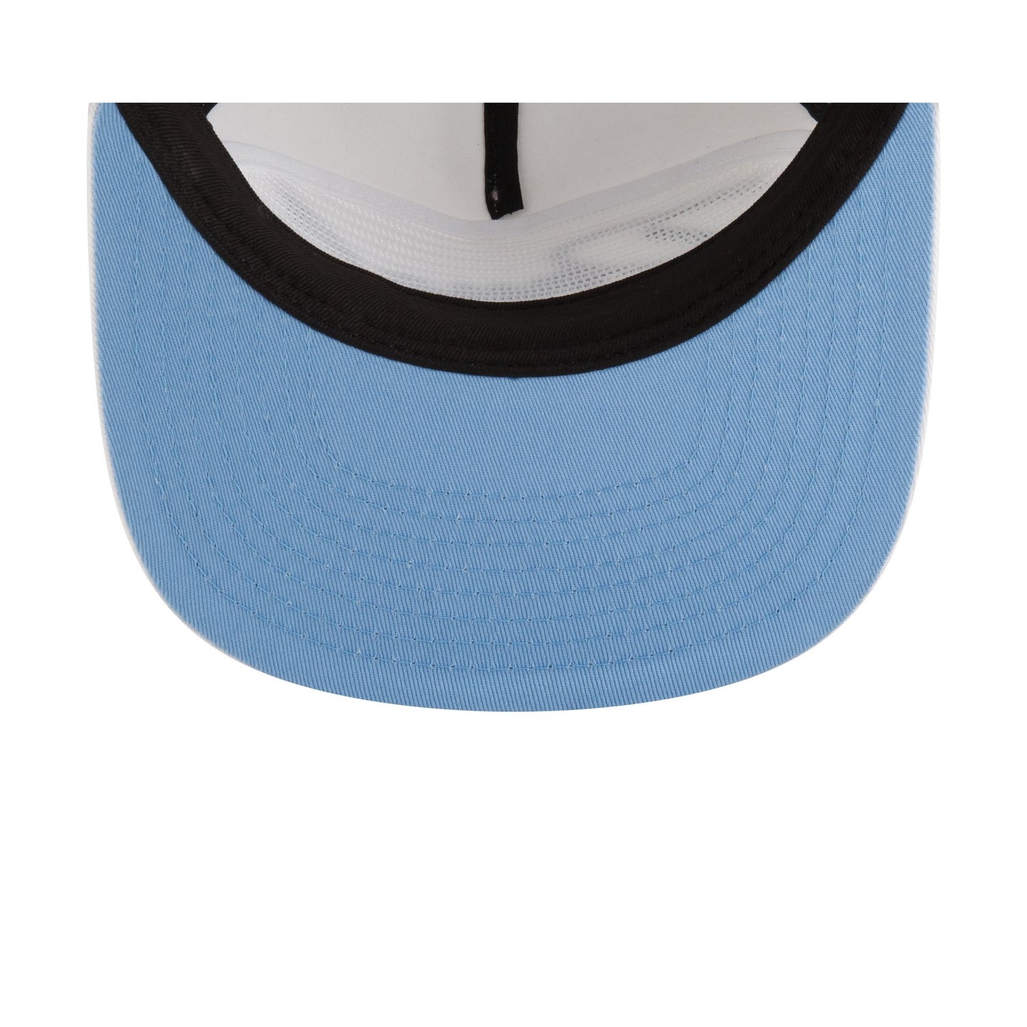 The New Era Cap Dangle Golfer Hat features an embroidered Dangle script at the front panels with a Buffalo patch at the right-wear side and a blue undervisor.