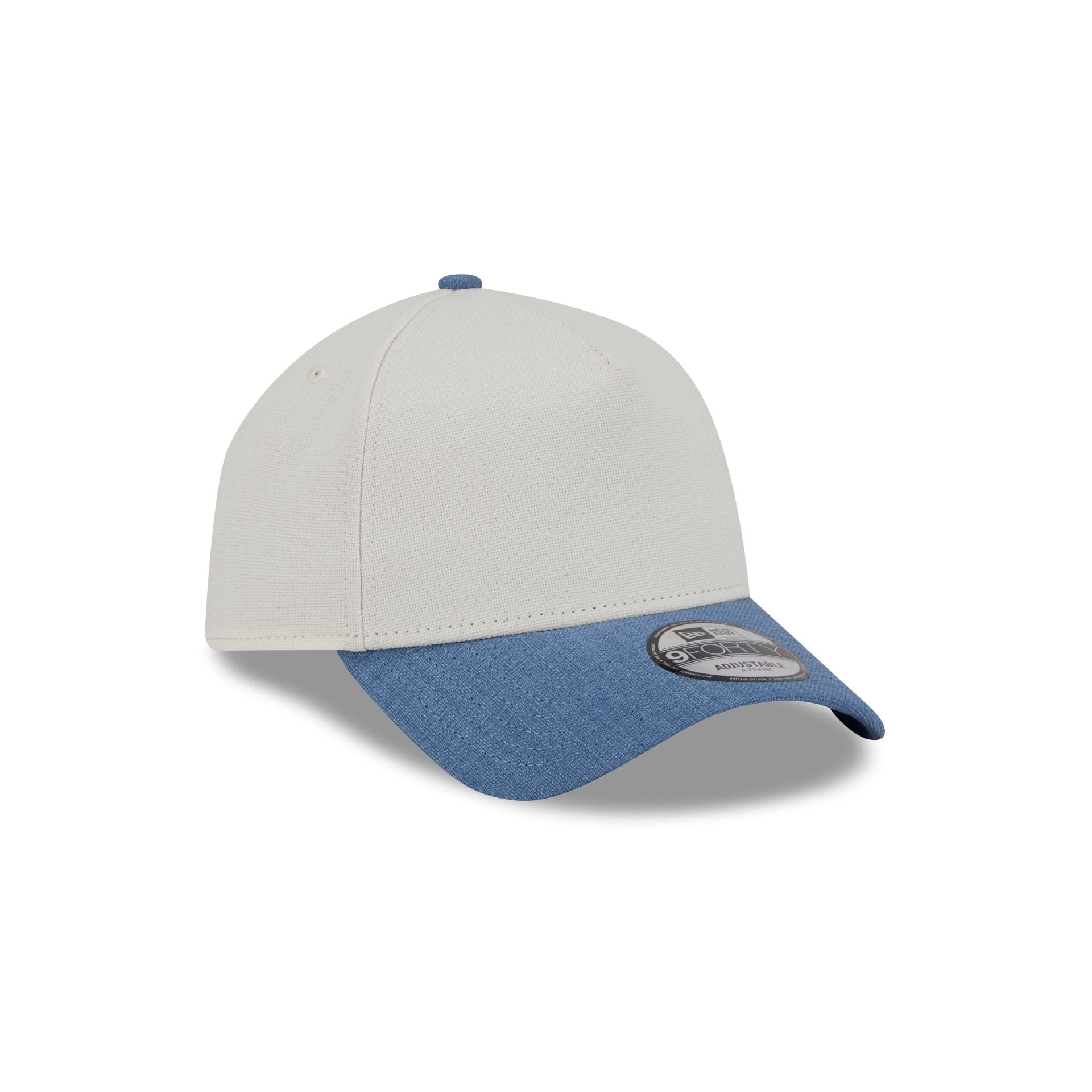 The New Era Cap Earth Day Two-Tone Blue 9FORTY A-Frame Snapback features an organic and recycled polyester blend oxford fabrication with an embroidered New Era Flag at the left-wear side, a blue visor, and an adjustable snapback closure at the rear.
