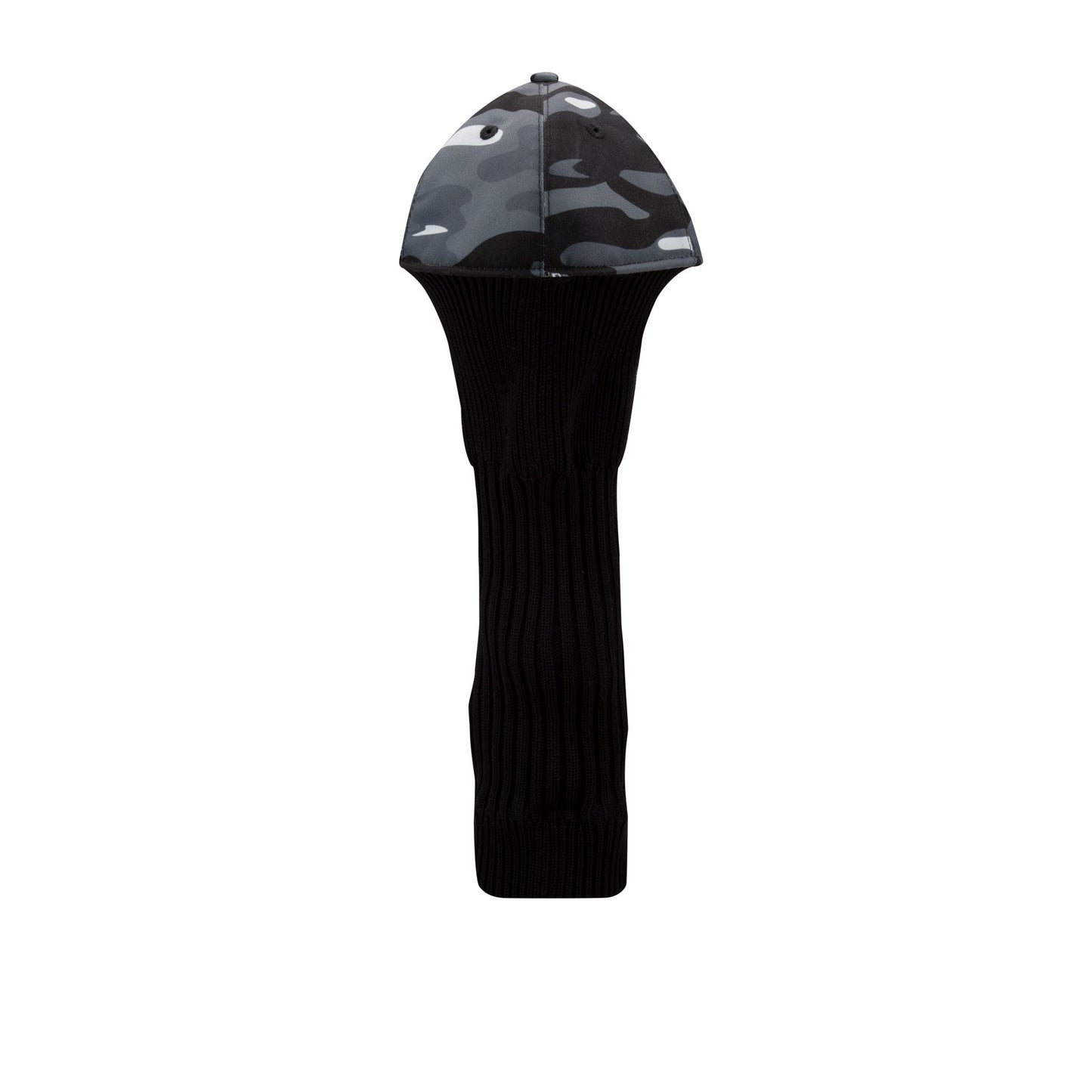 The New Era Cap Fairway Black Headcover features a replica New Era cap with an embroidered New Era script at the front panels and a tee holder at the right side.