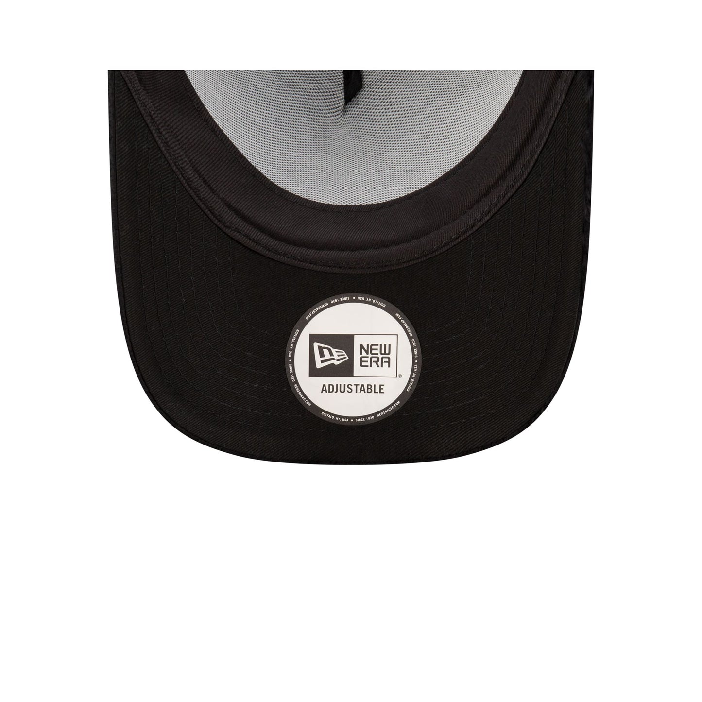 The New Era Cap Fleece Black 9FORTY A-Frame Adjustable Cap features a long-haired fleece fabrication with an embroidered New Era Flag at the left-wear side, a black undervisor, and an adjustable hook and loop strap at the rear.