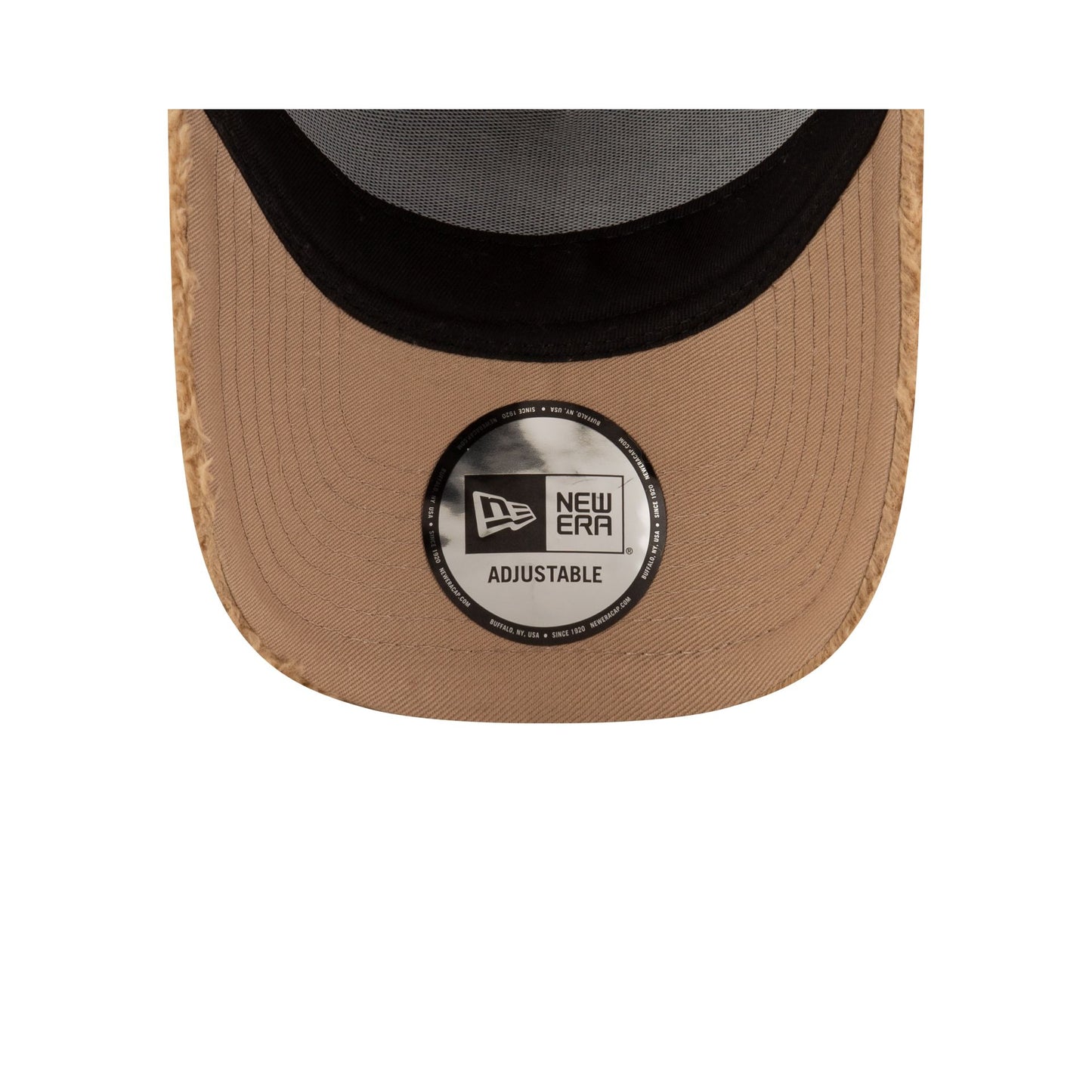 The New Era Cap Fleece Camel 9FORTY A-Frame Adjustable Cap features a long-haired fleece fabrication with an embroidered New Era Flag at the left-wear side, a tan undervisor, and an adjustable hook and loop strap at the rear.