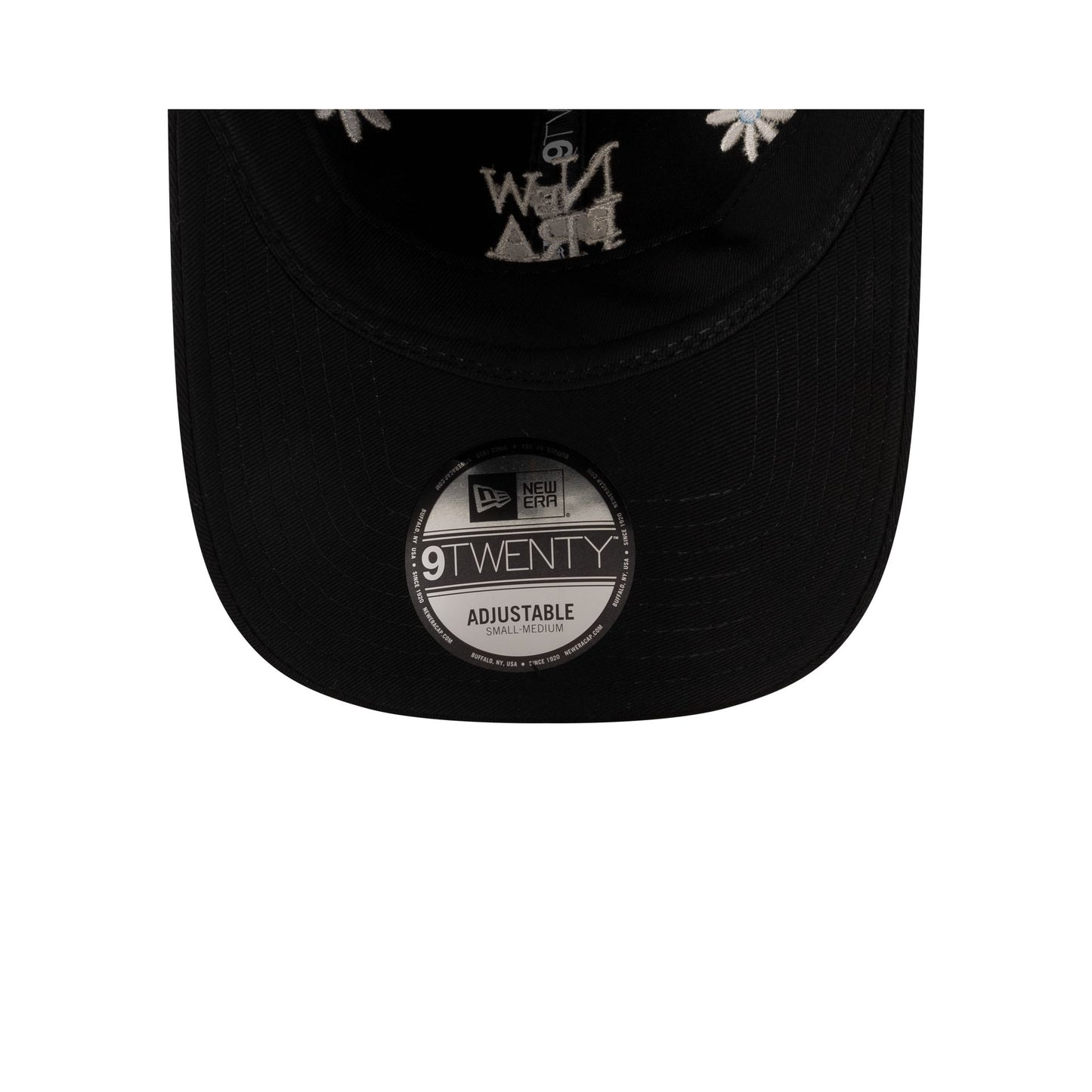 The New Era Cap Flower Embroidery Black Denim 9TWENTY Adjustable Cap features an embroidered New Era 1920 logo at the front panels with a floral allover print fabrication and an adjustable D-Ring closure at the rear.