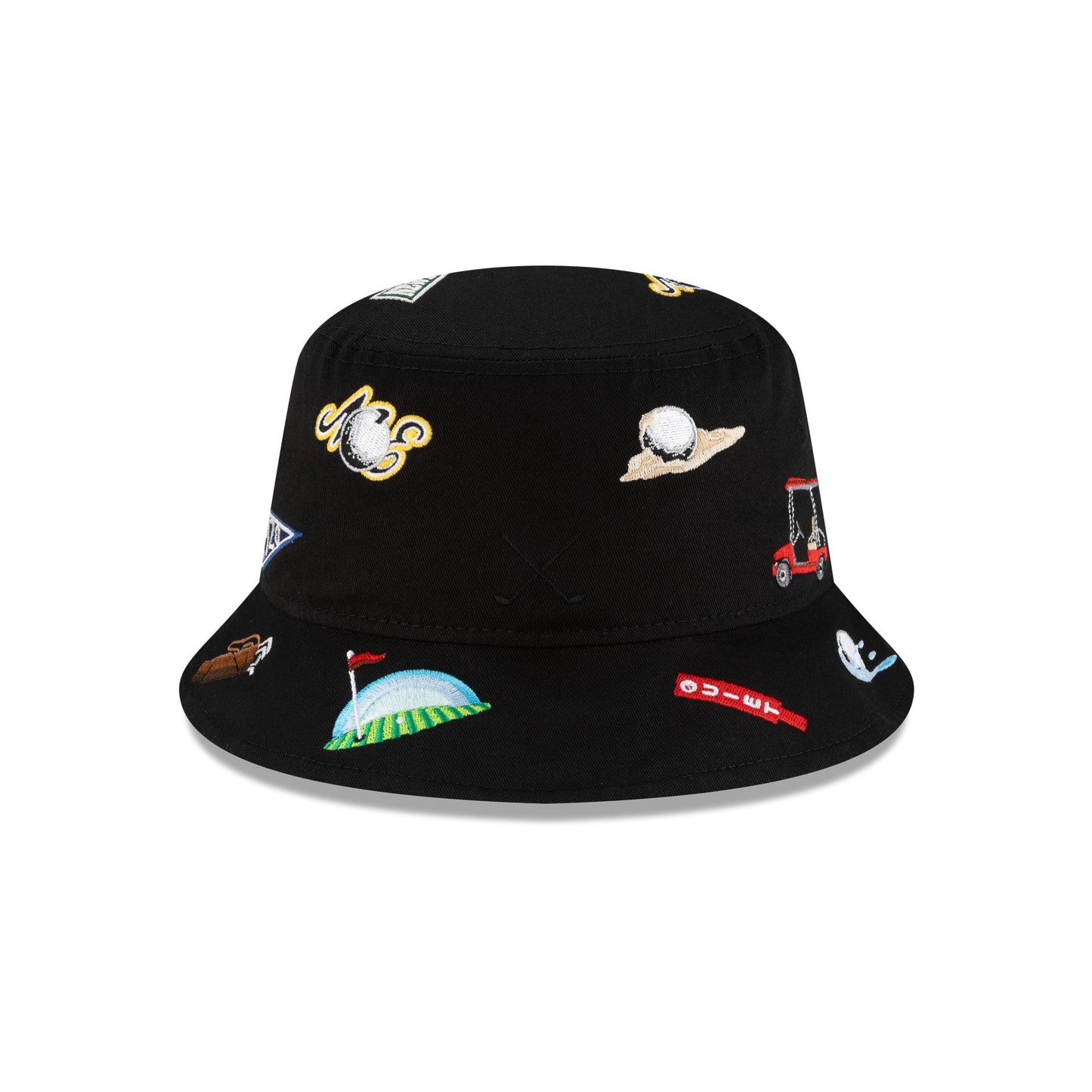 The Golf is Good All Over Bucket Hat features an embroidered Golf is Good script logo at the front with embroidered golf icons throughout the cap and golf clubs at the rear.