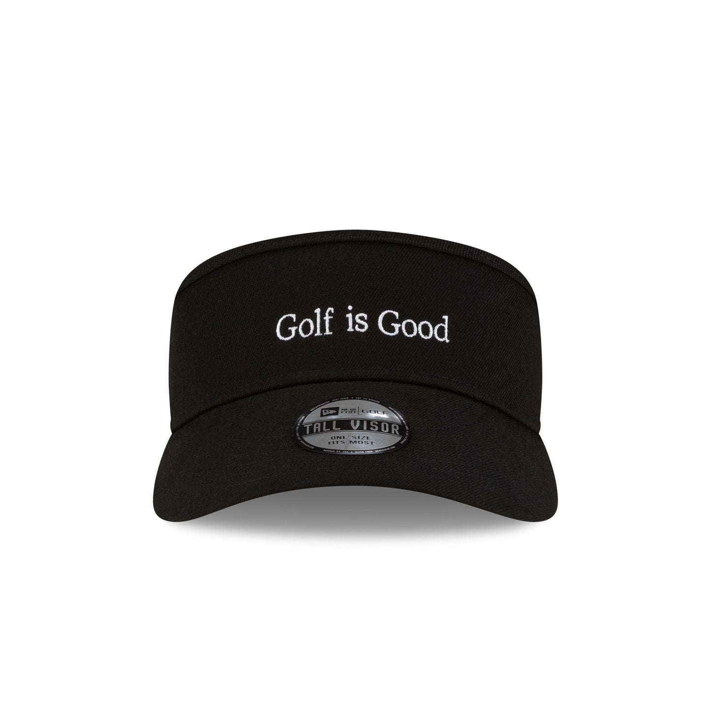 The Golf is Good Black Visor Hat features an embroidered Golf is Good wordmark at the front visor with an adjustable closure at the rear.