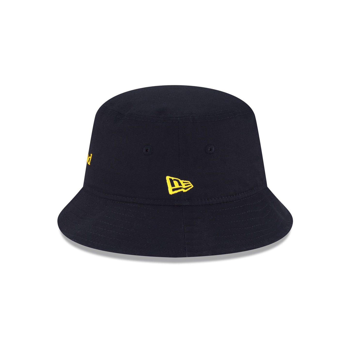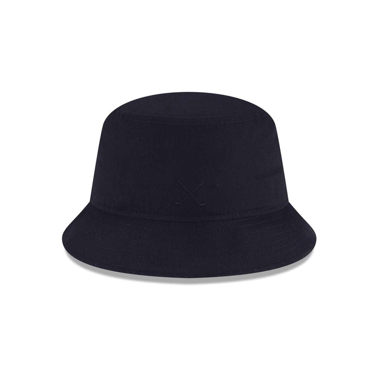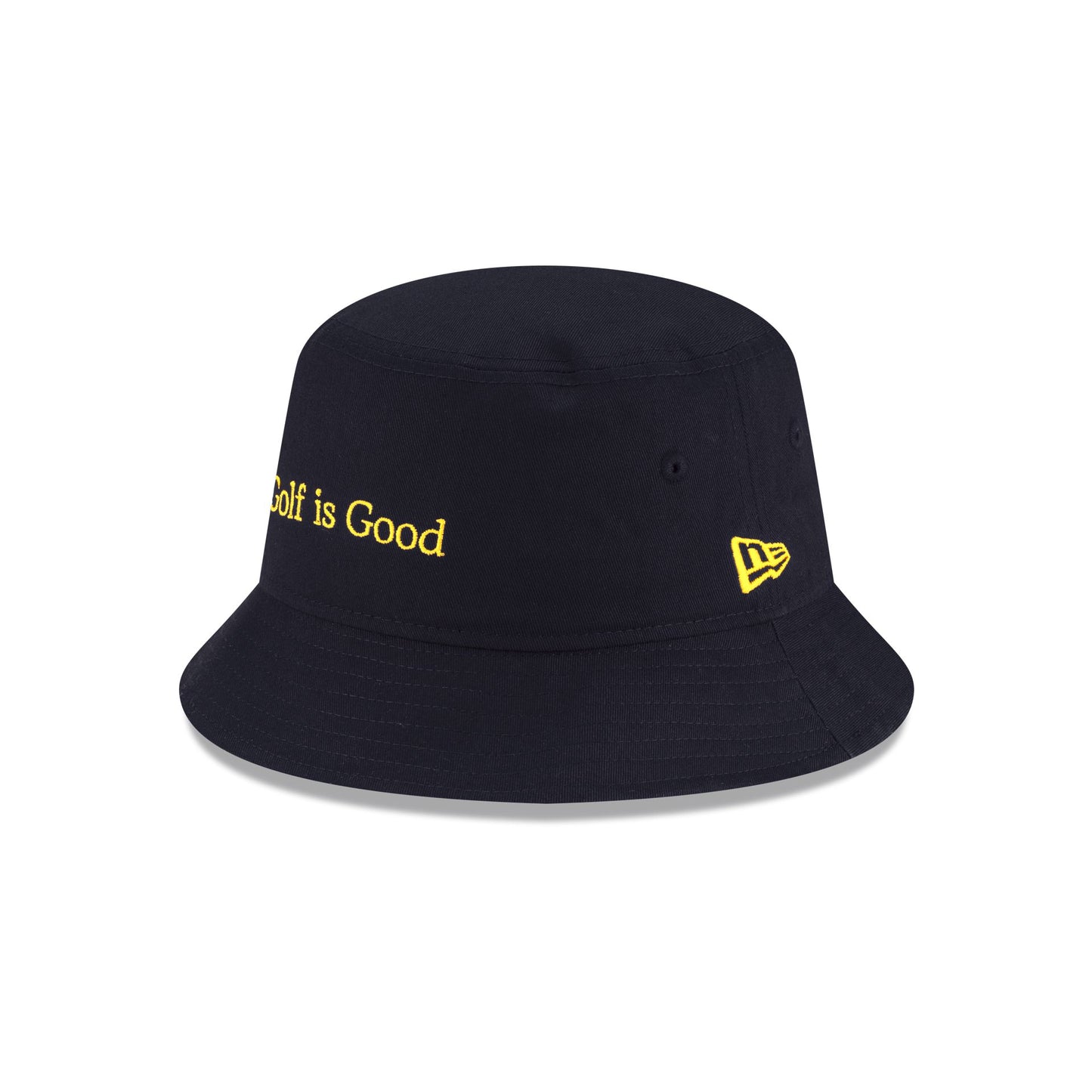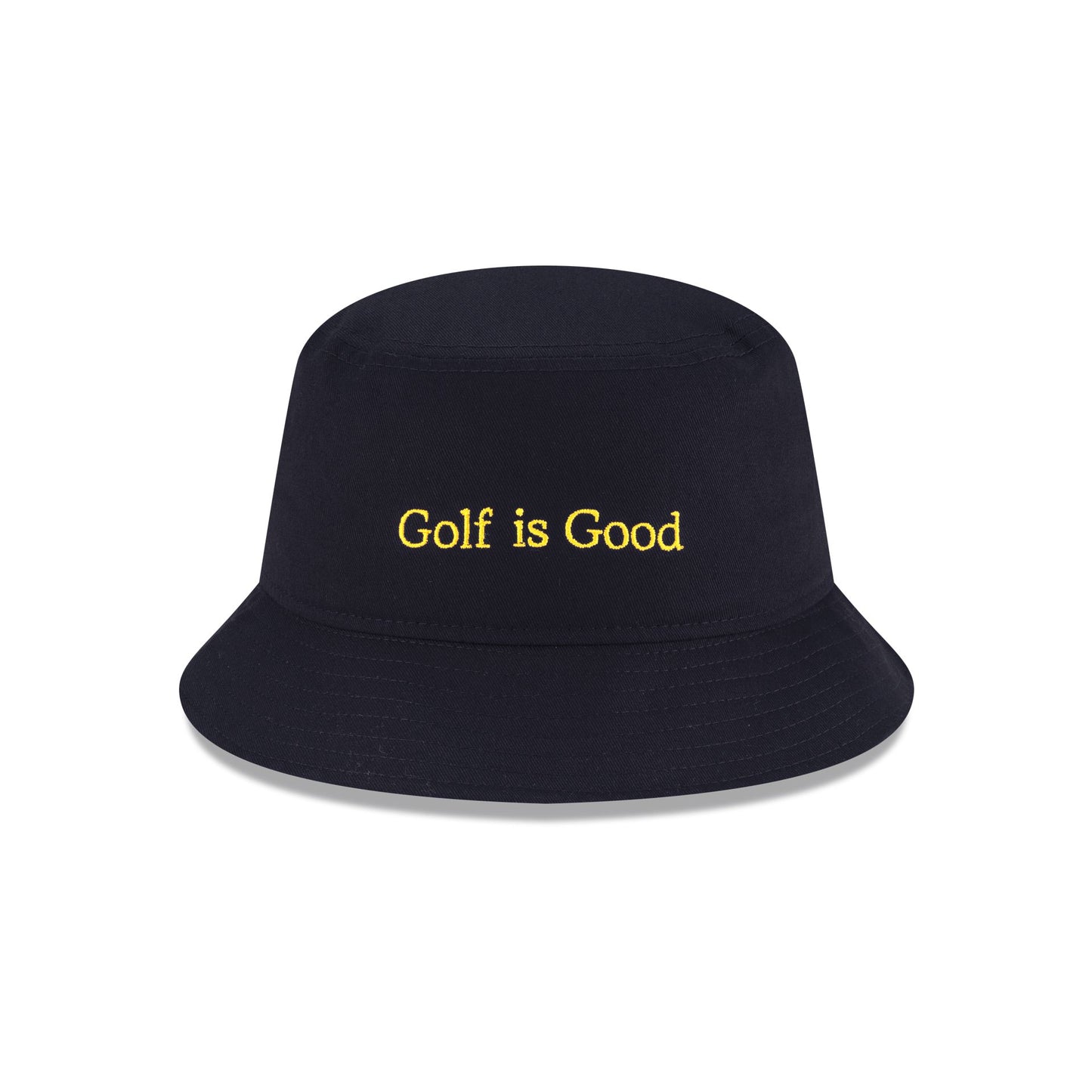 The Golf is Good Navy Bucket Hat features an embroidered Golf is Good wordmark at the front with gold clubs embroidered at the rear.