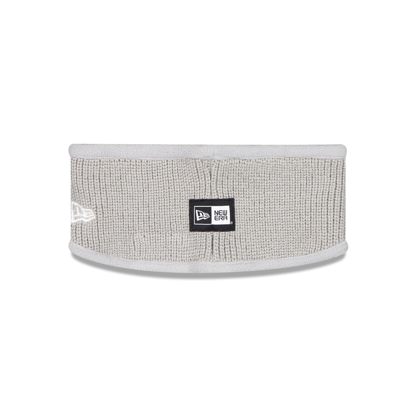 The New Era Cap Gray Knit Ear Warmer features an embroidered New Era Flag at the left-wear side with a reflective woven New Era box logo at the rear. Additional details include a ribbed knit fabrication at the exterior and a soft fleece fabrication at the interior.